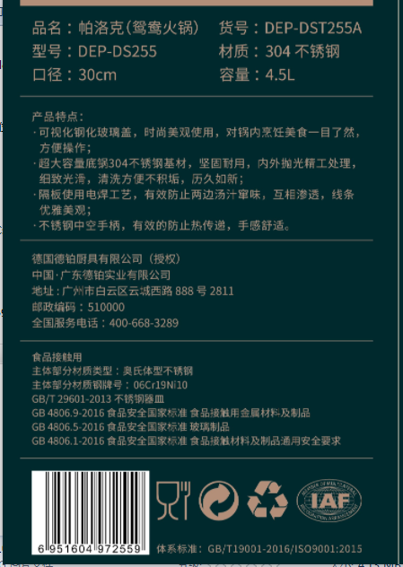 Debo(德铂)帕洛克鸳鸯火锅30cm DEP-DS255(单位:个) 不锈钢色