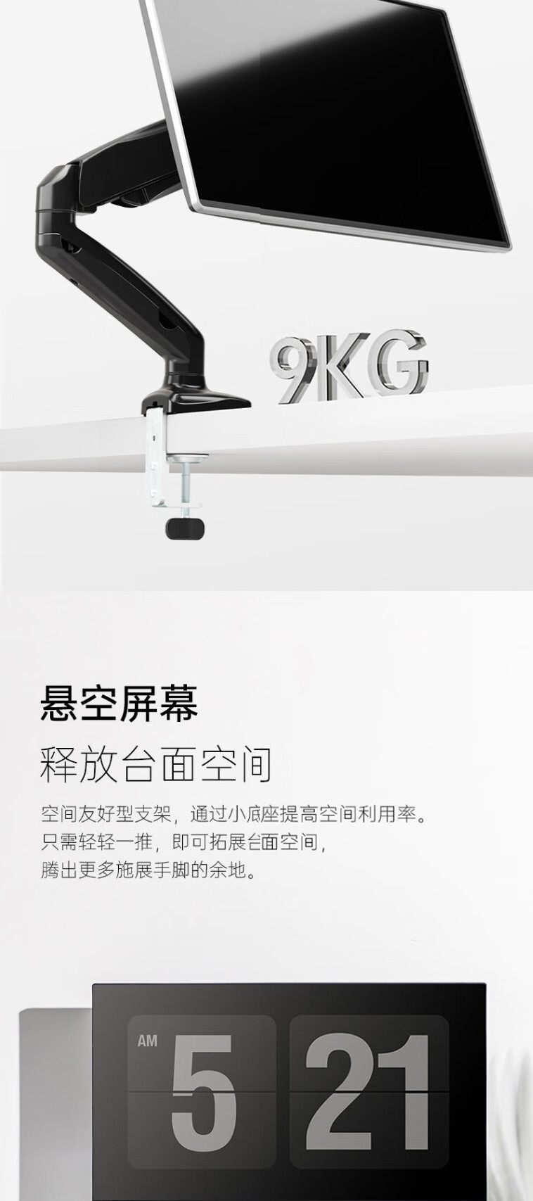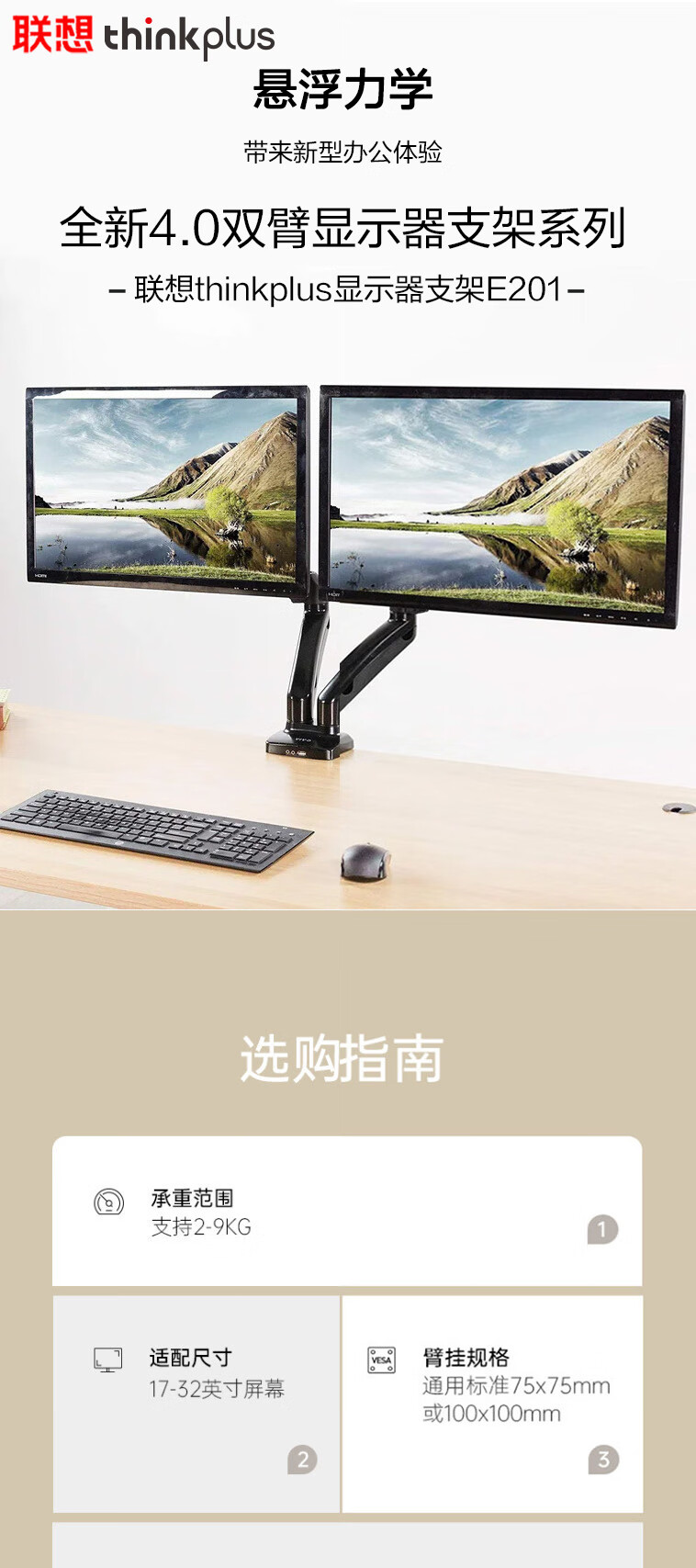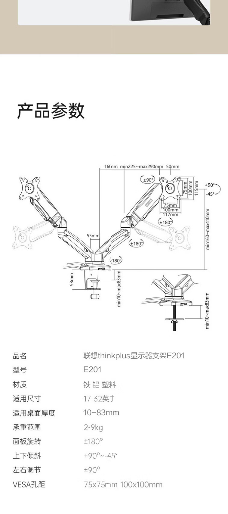 联想 ThinkPad 显示器支架E201 黑,力学仿生悬浮壁,180°全视角,9KG硬核承托,个 黑色