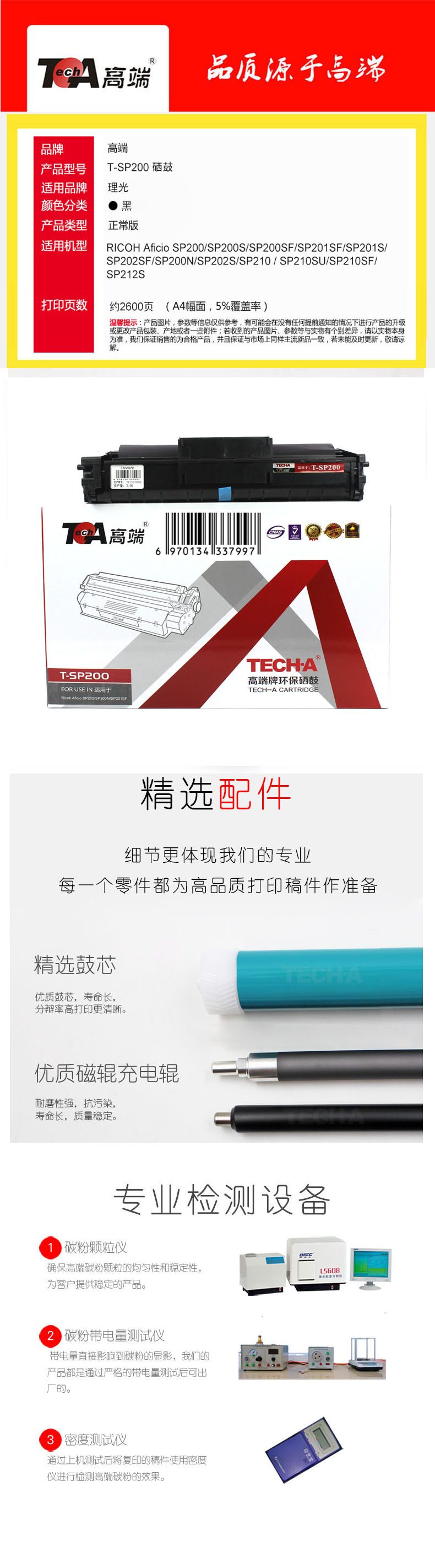 高端TECH-A T-SP200硒鼓适用理光SP200/SP200S打印机SP201S/SP202SF墨粉盒SP202S碳粉盒SP210 SP212S 黑色