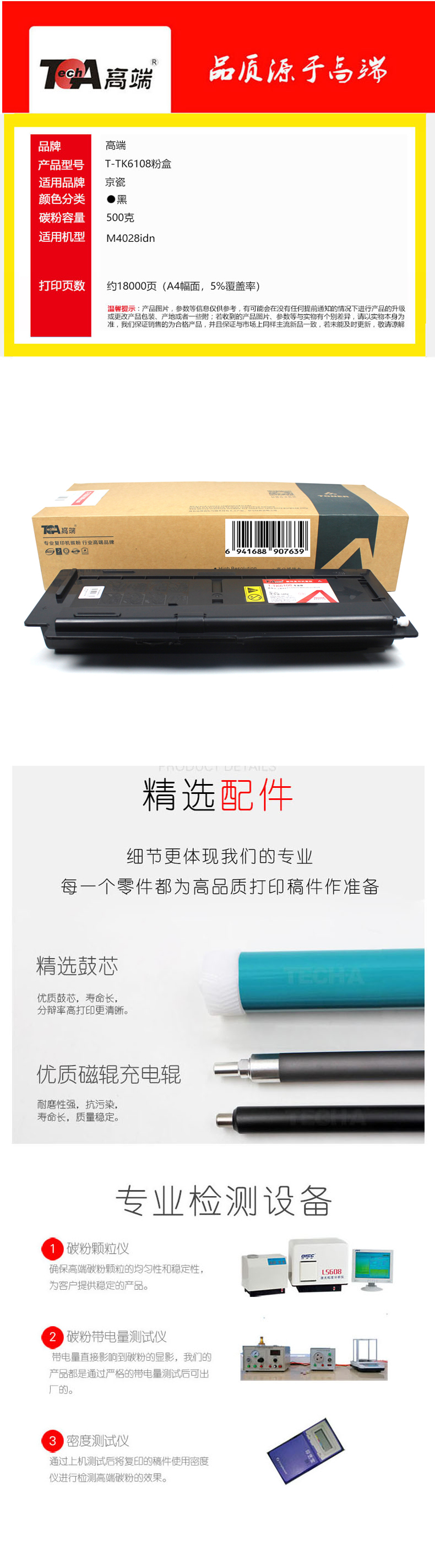 高端TECH-A T-TK6108粉盒适用京瓷M4028idn复印机墨粉盒Kyocera MITA碳粉盒 黑色