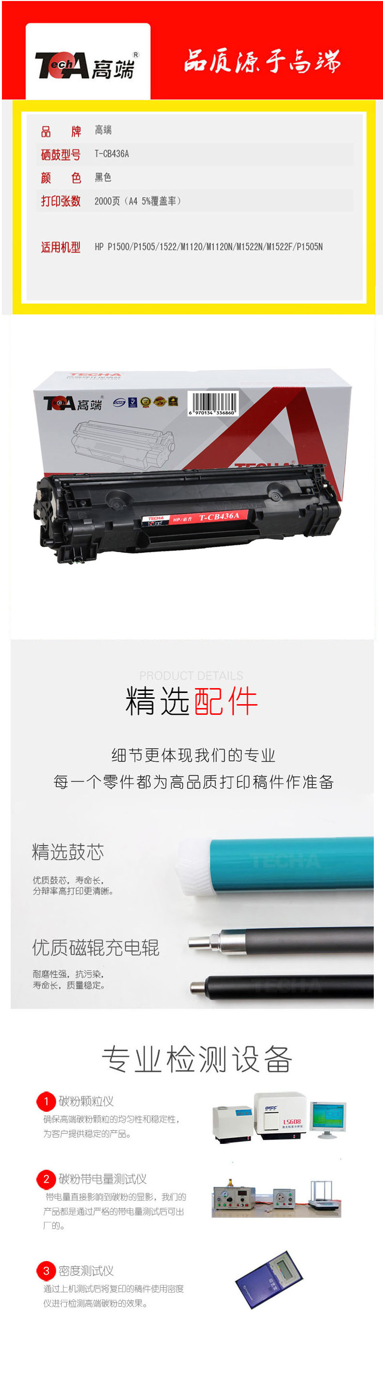 高端(TECH-A)T-CB436A硒鼓适用hp laserjet m1522nf硒鼓P1505N m1522nf硒鼓 黑色