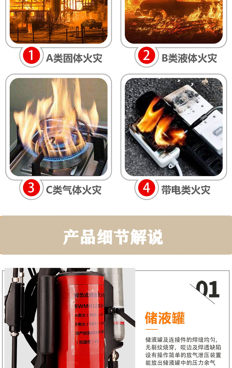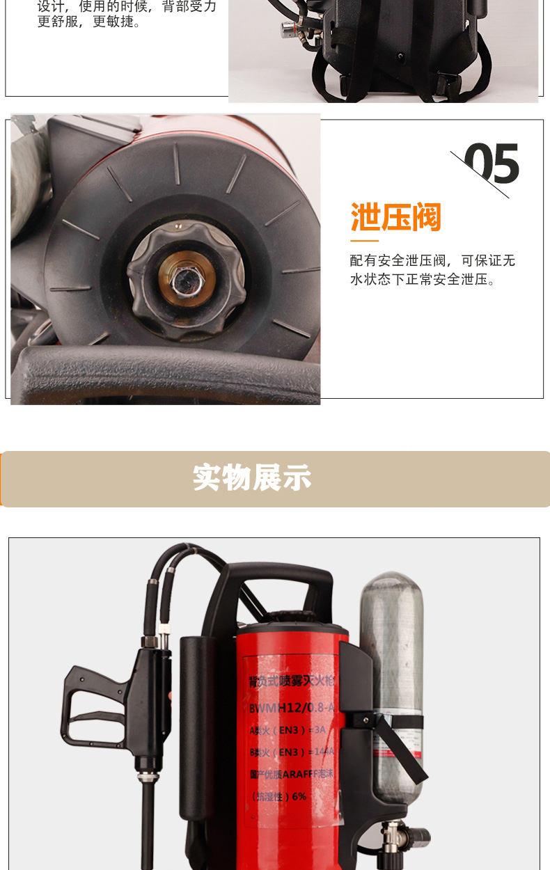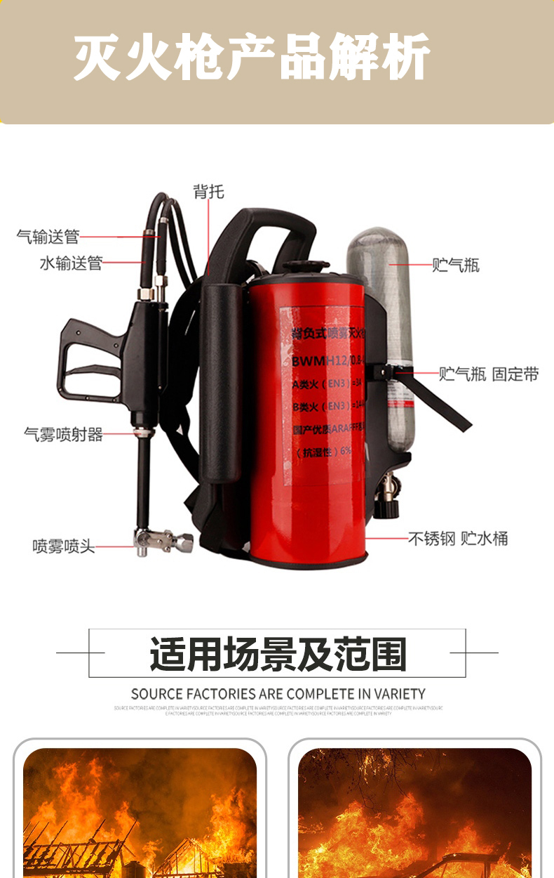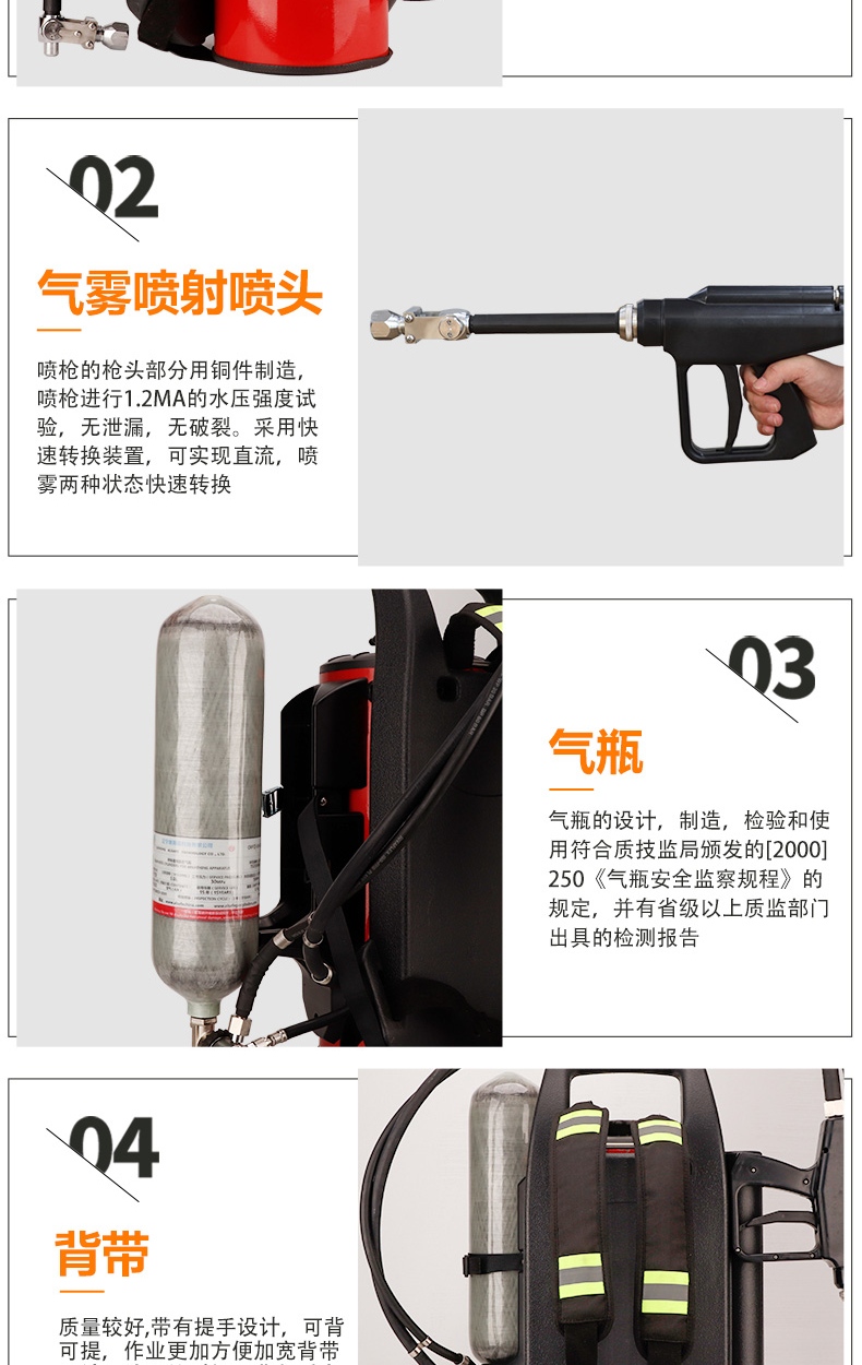 奋进者( FENJINZHE)12L背负式灭火机水枪森林消I防灭火器 背负式高压细水雾灭火器 红色