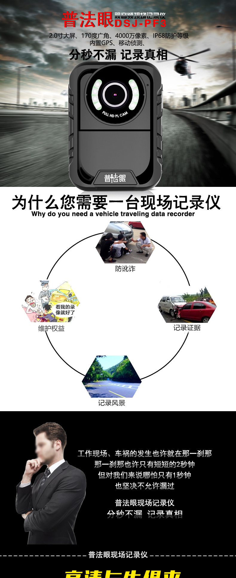 普法眼 DSJ-PF3 32G 现场音频执法记录仪 内置GPS 黑色