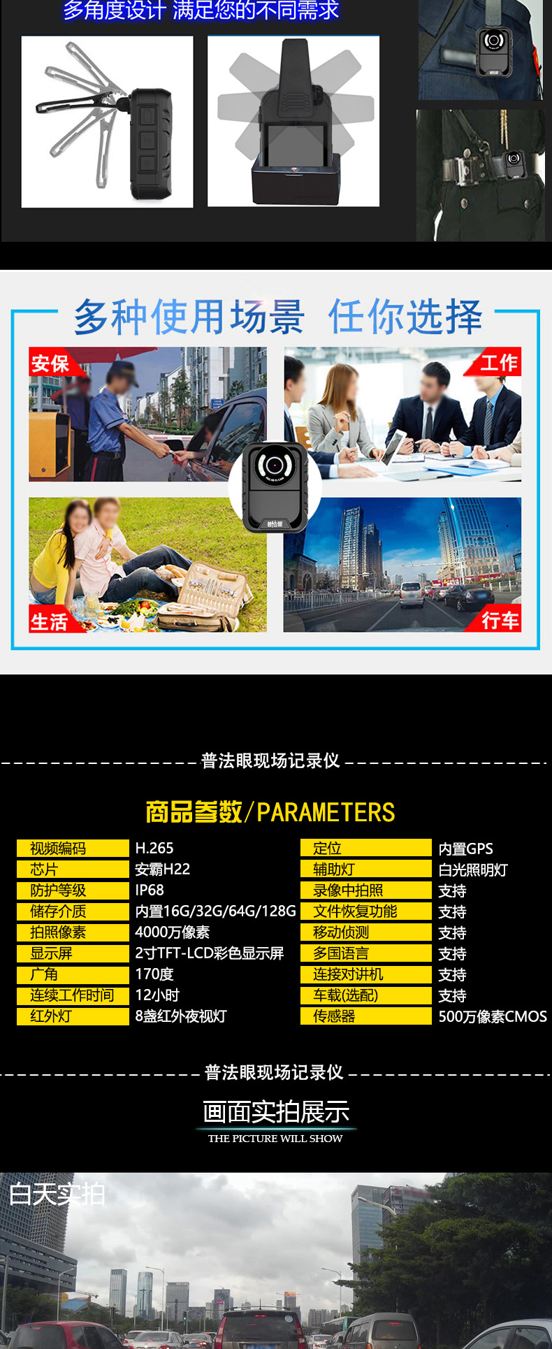 普法眼 DSJ-PF3 128G 现场音频执法记录仪内置GPS 黑色