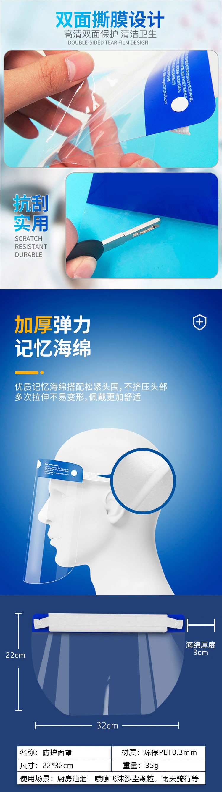 海氏海诺 医用隔离面罩 10片 一次性高清透明防护面罩面屏 白色