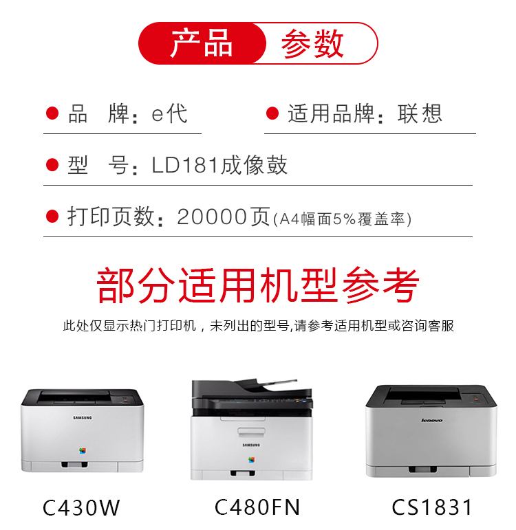 e代经典 LD181成像鼓 适用联想CS1811硒鼓CS1831W墨盒CM7120W打印机CM7110W感光鼓LT1821硒鼓组件/个 黑色