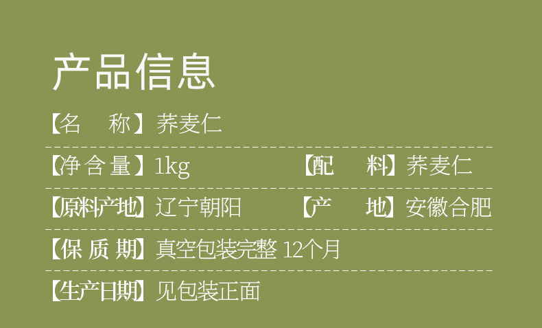 燕之坊 荞麦仁1kg(单位:袋) 铁灰色