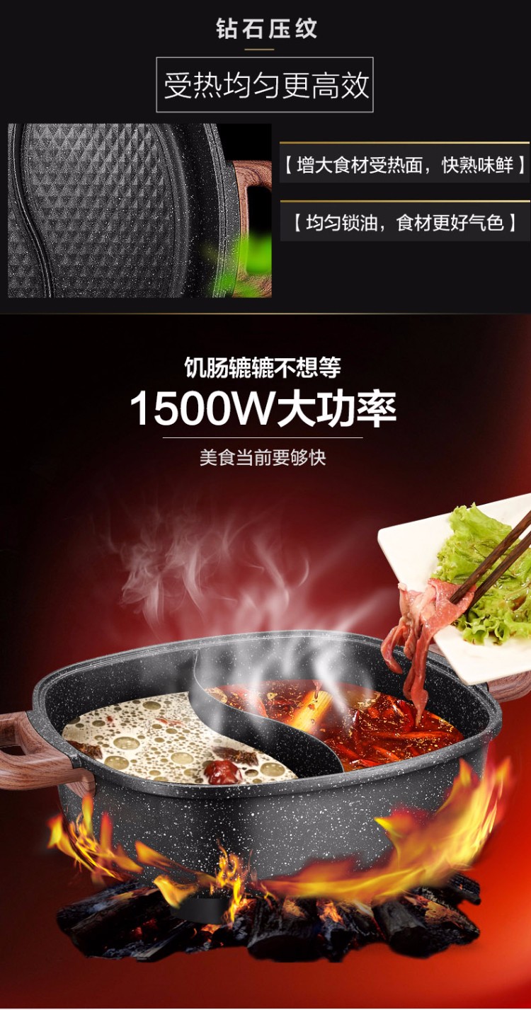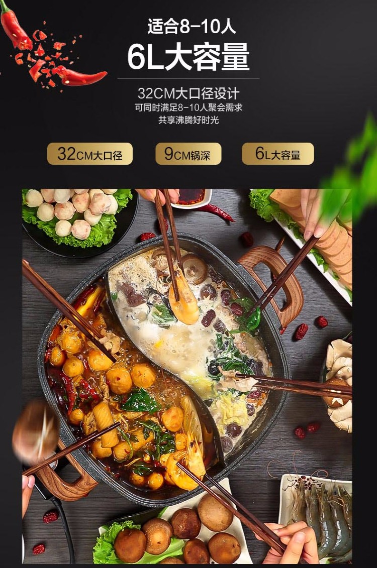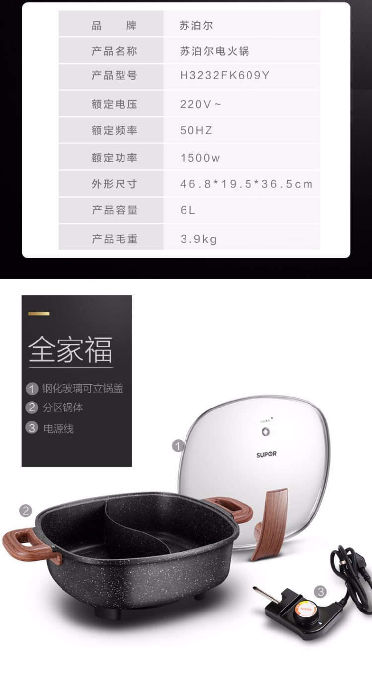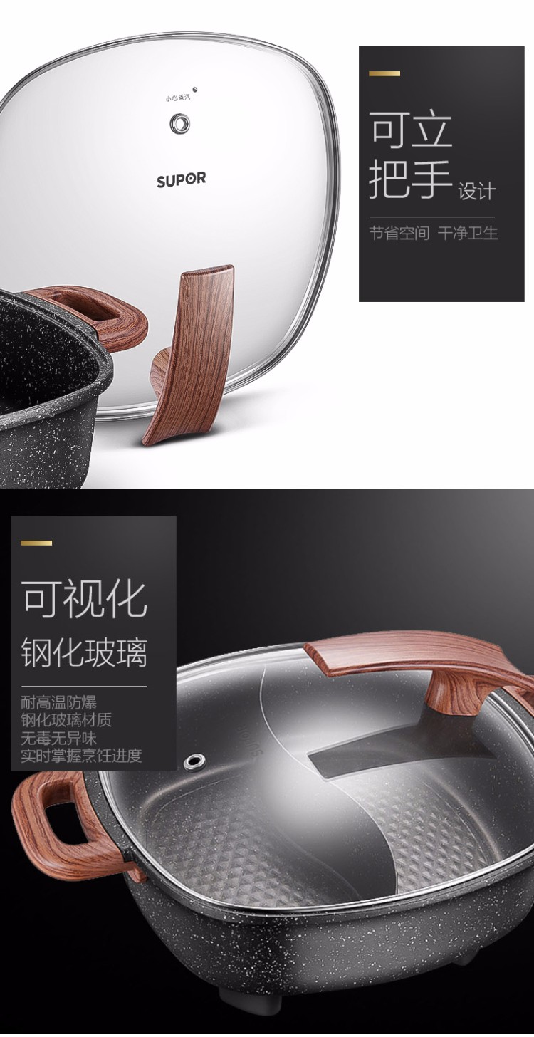苏泊尔(SUPOR) 麦饭石鸳鸯电火锅 H3232FK609Y 6L 黑色(单位:台)