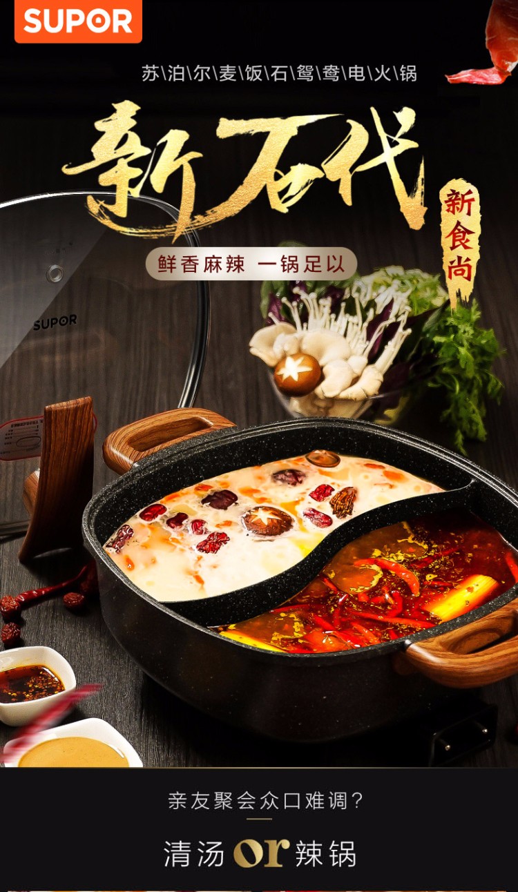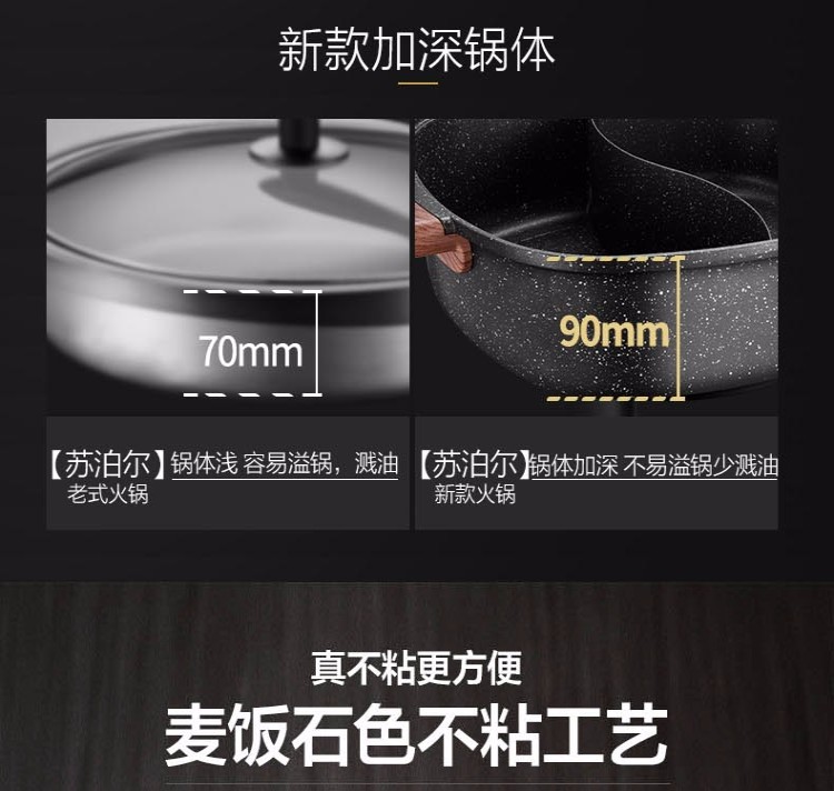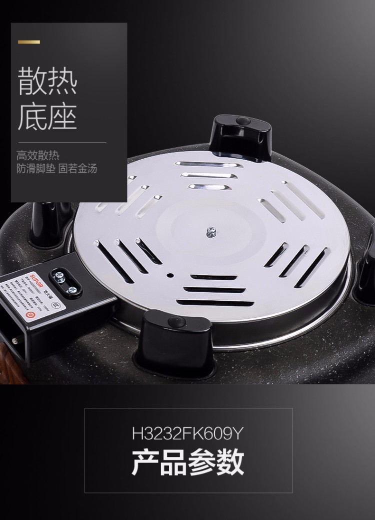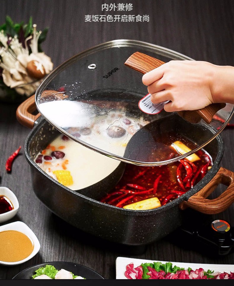 苏泊尔(SUPOR) 麦饭石鸳鸯电火锅 H3232FK609Y 6L 黑色(单位:台)