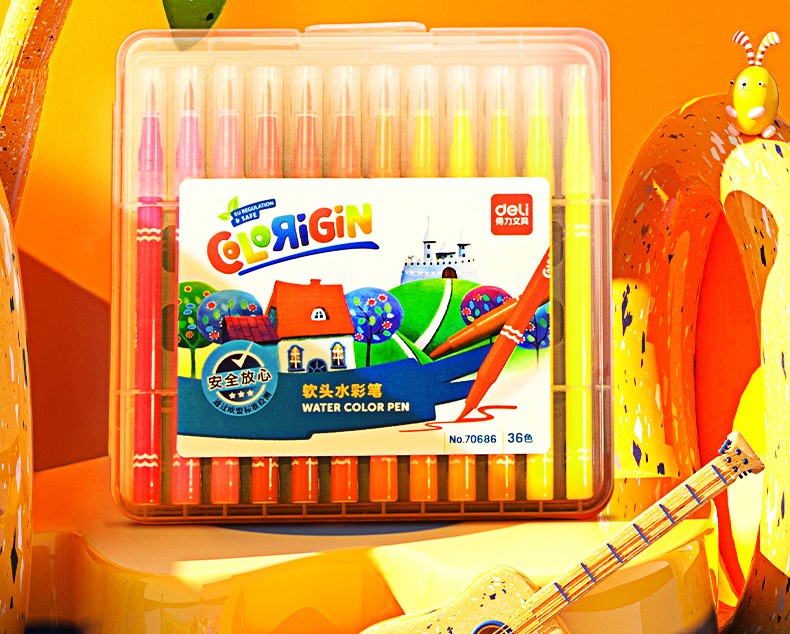 得力70686-36色软头水彩笔(混)(36色) 混色