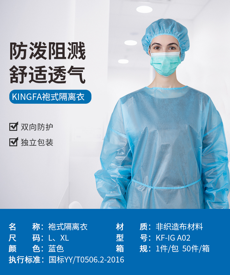 金发KINGFA隔离衣袍式背开式防护衣防护隔离服SMS 隔离衣A02 蓝色