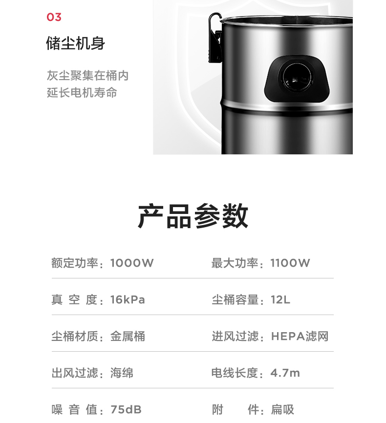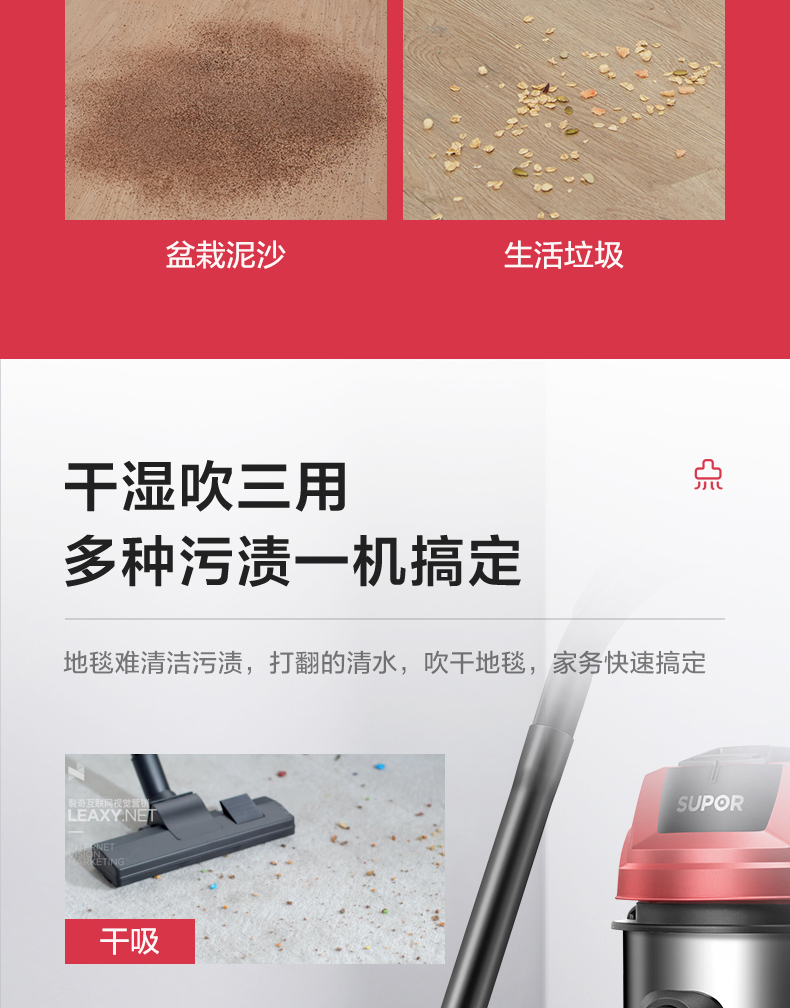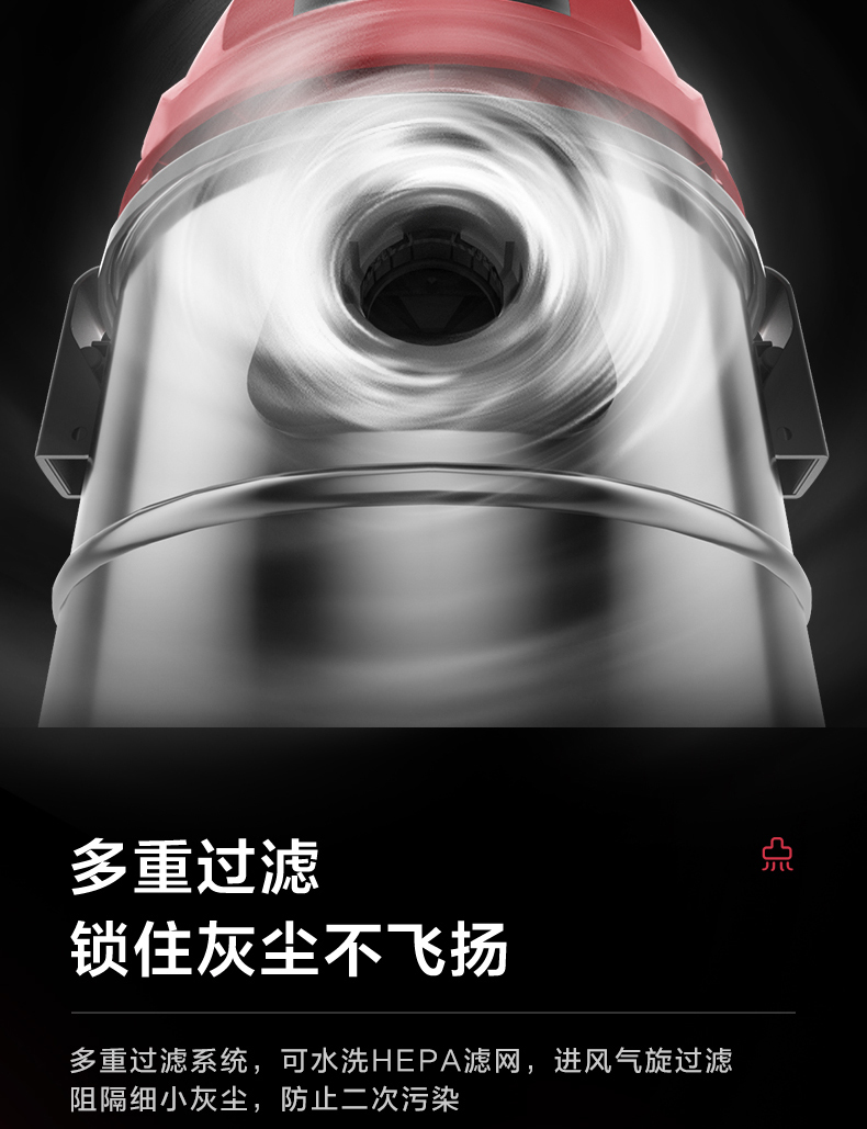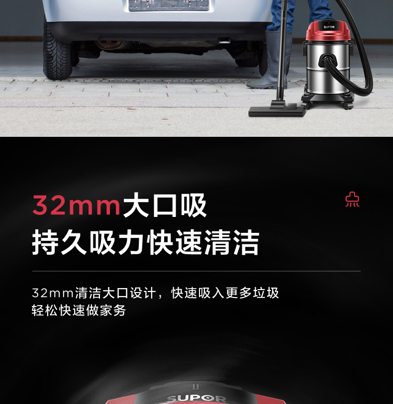苏泊尔 SUPOR桶式吸尘器 商用家用不锈钢大吸力吸尘器 VCT80P/台 银红色