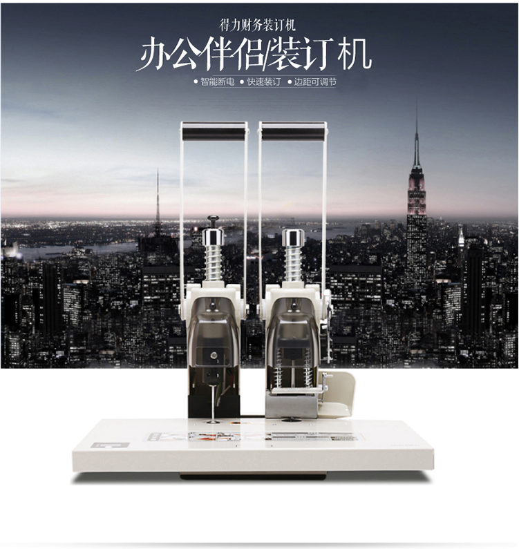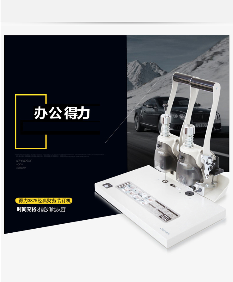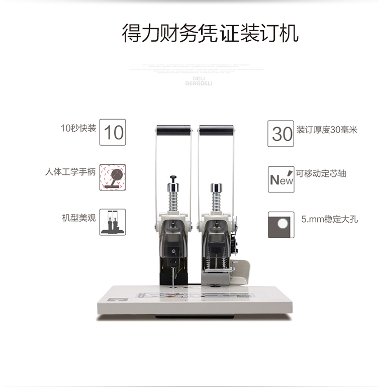 得力(deli)3875 财务凭证装订机 闪电快装 边距可调节 装订厚度30mm 白色