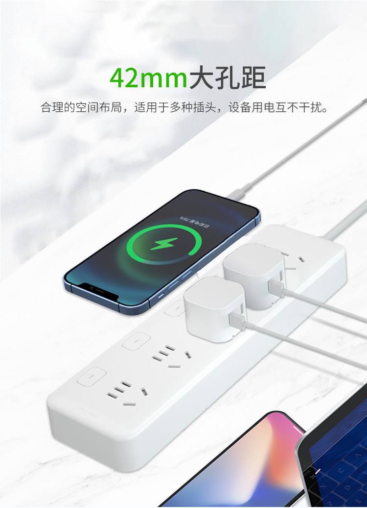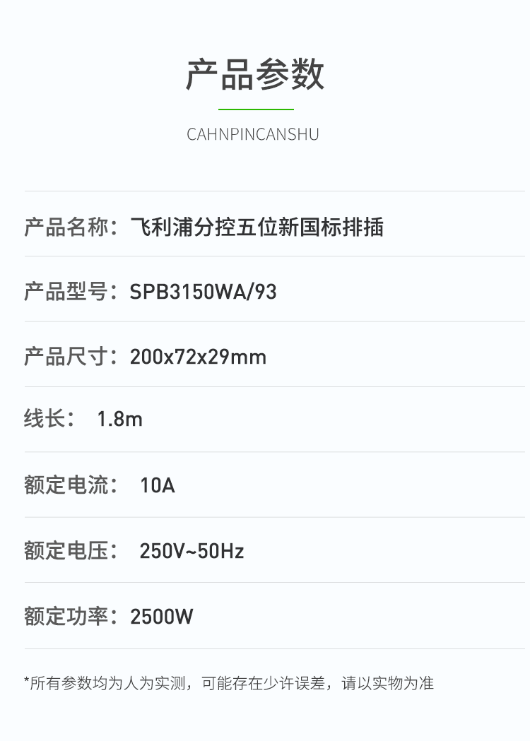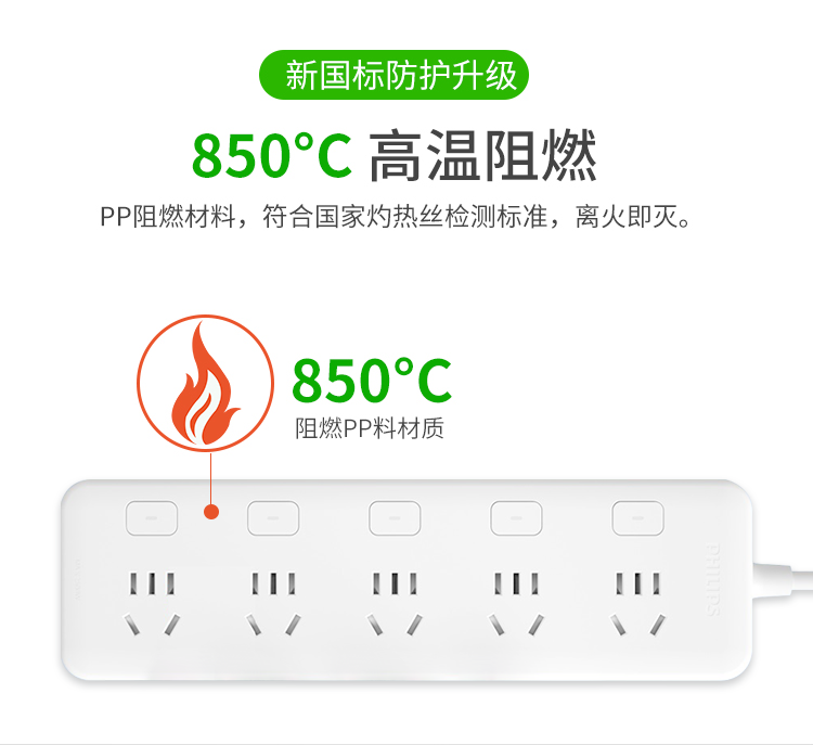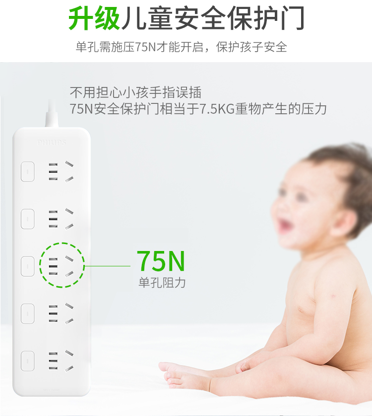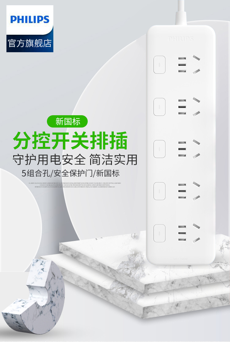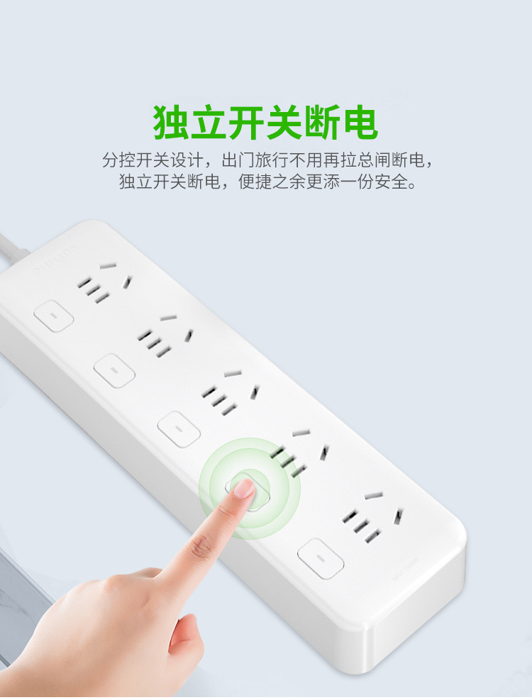 飞利浦(PHILI PS)5位五孔分控新国标排插1.8米 SPB3150WA/93 白色 白色