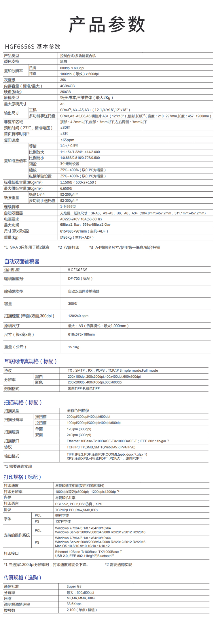 汉光联创HGF6656S黑白国产智能复印机A3商用大型复印机办公商用 黑色