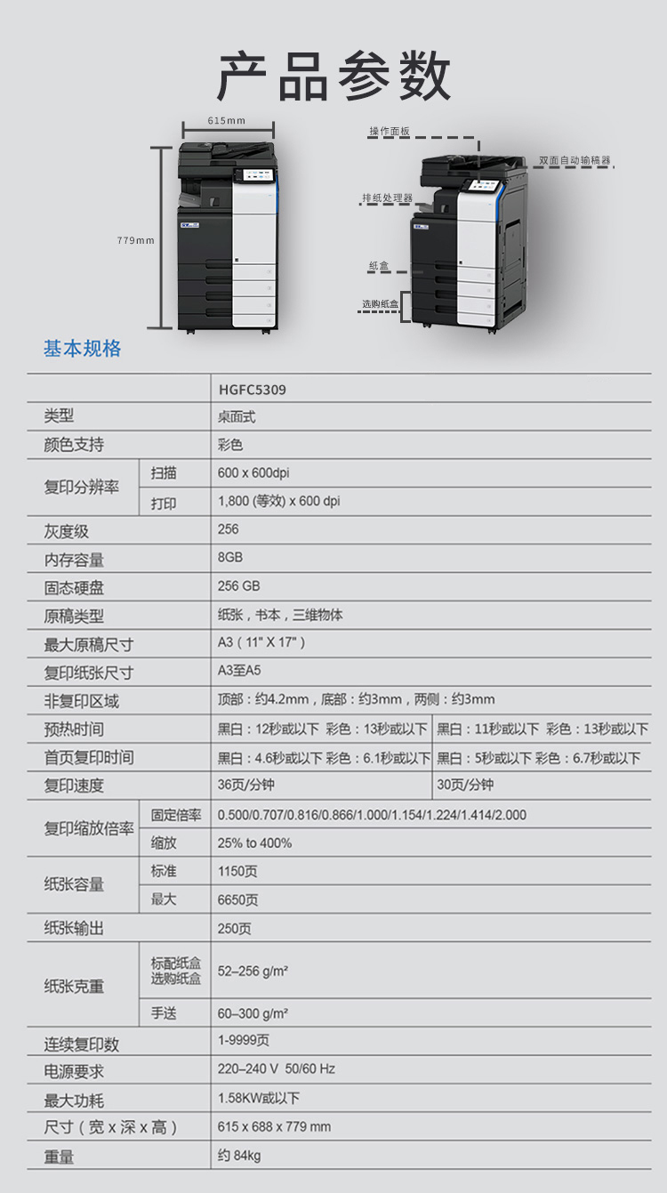 汉光联创HGFC5309复合机彩色智能复合机多功能一体机打印复印扫描办公商用国产品牌 黑色