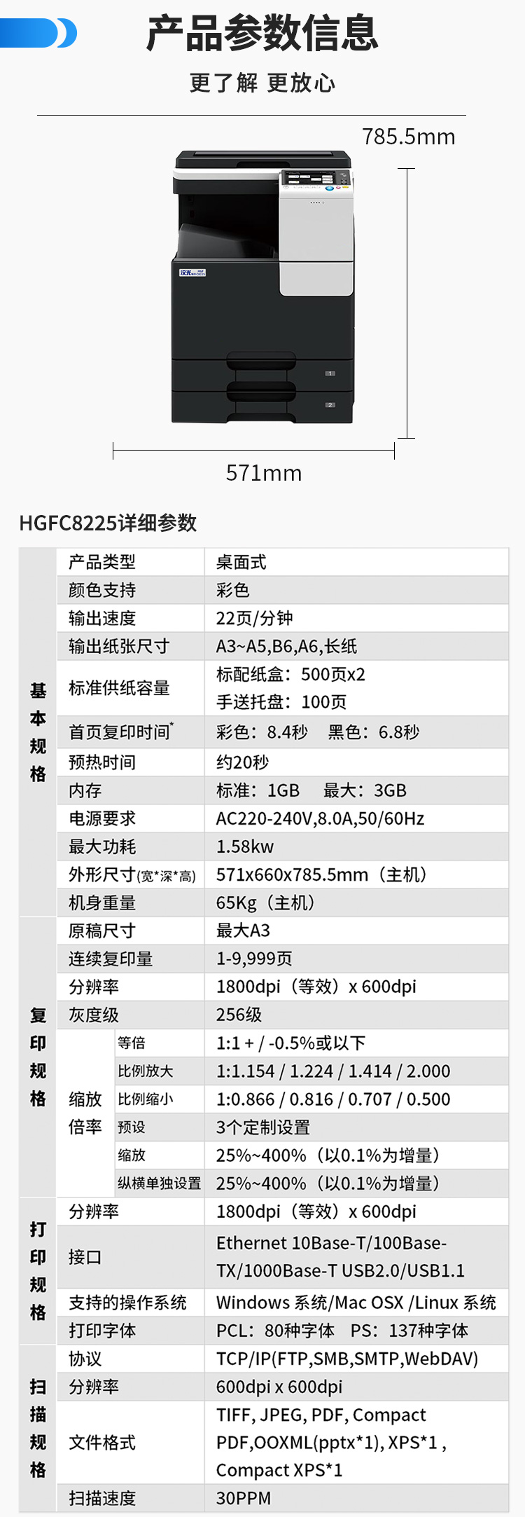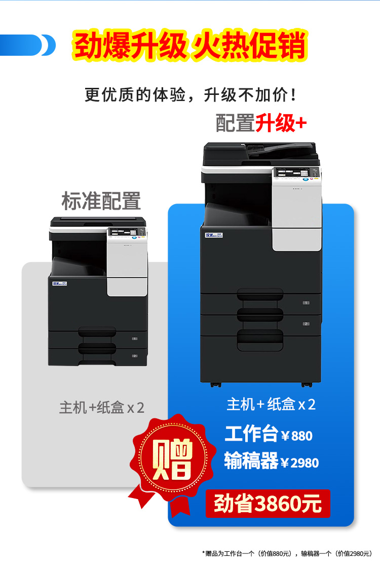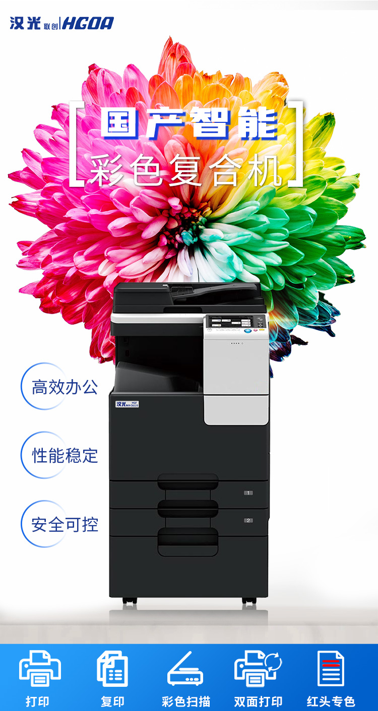 汉光联创HGFC8225彩色多功能数码激光智能复合机A3复印打印扫描一体机商用大型办公国产双纸盒+输稿器+工作台 黑色