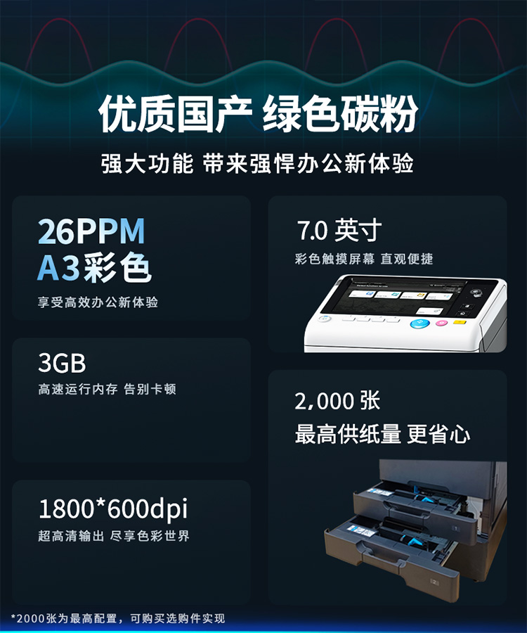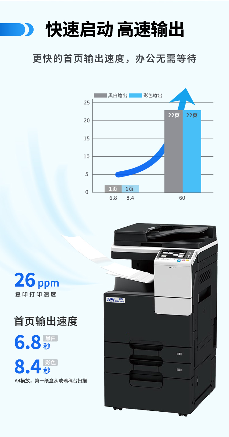 汉光联创HGFC8265彩色多功能数码激光智能复合机A3复印打印扫描一体机商用大型办公国产双纸盒+输稿器+工作台 黑色
