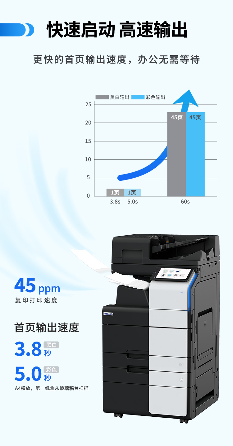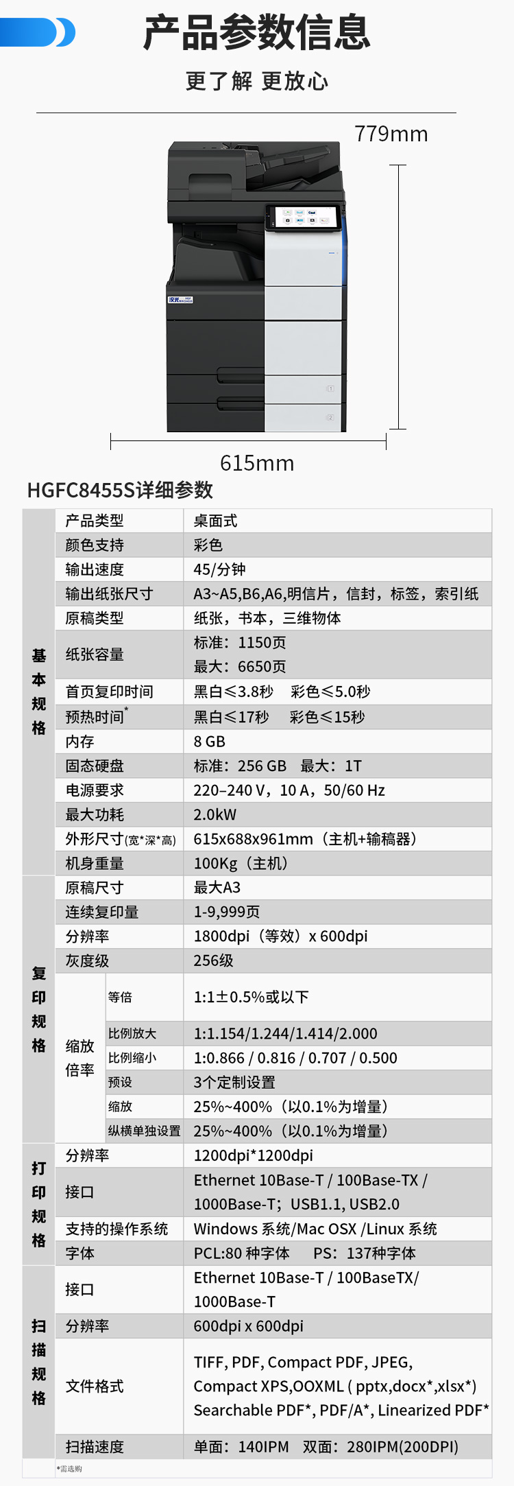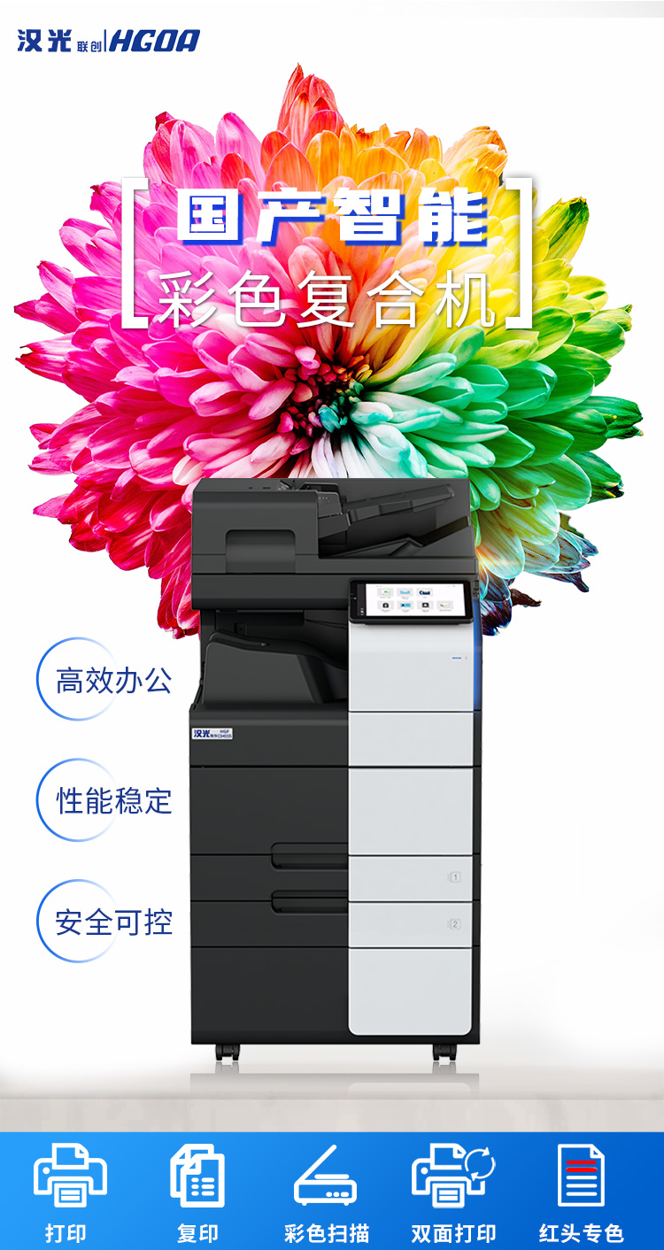 汉光联创HGFC8455S彩色多功能数码激光智能复合机A3复打印扫描一体机商用大型办公国产双纸盒+输稿器+工作台 黑色