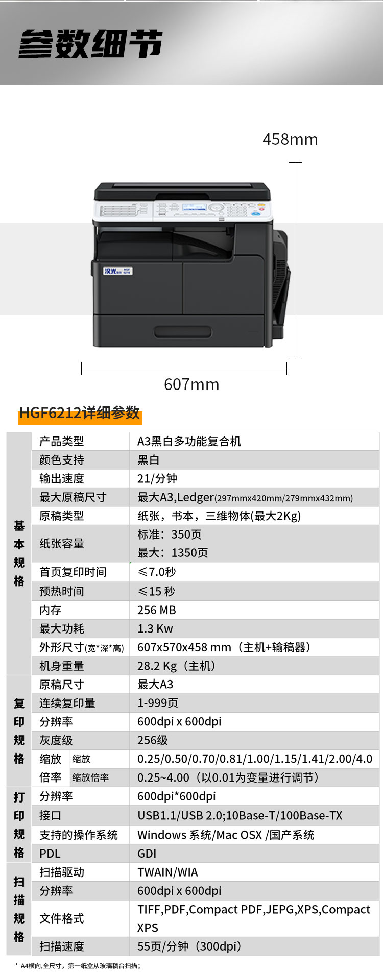 汉光联创 HGF6212黑白多功能数码激光智能复合机(A3打印/复印/扫描合一体) 黑色