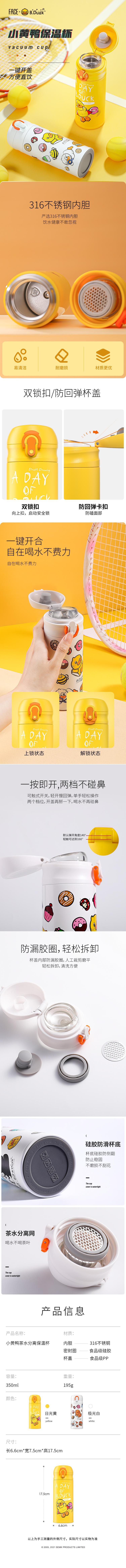 FACE×B.DUCK轻量弹跳盖保温杯BD-KV35A 白色