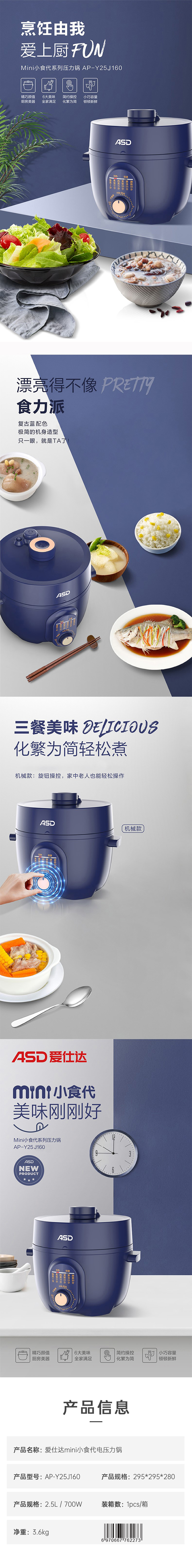 爱仕达mini小食代电压力锅AP-Y25J160(单位:只) 蓝色