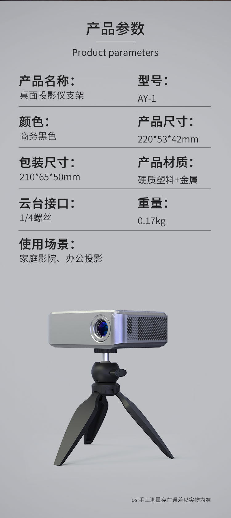 HAILE投影仪支架桌面投影仪支架三脚架极米Z6x8/H3S坚果小米当贝适用AY-1 曜石黑