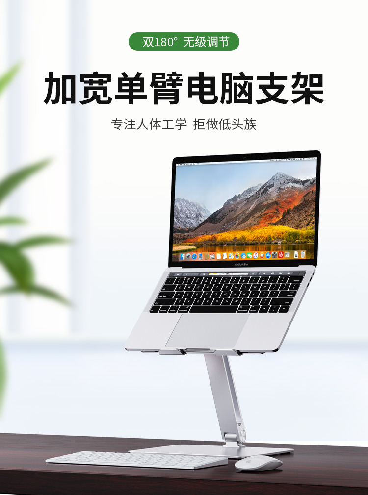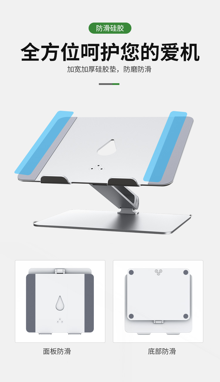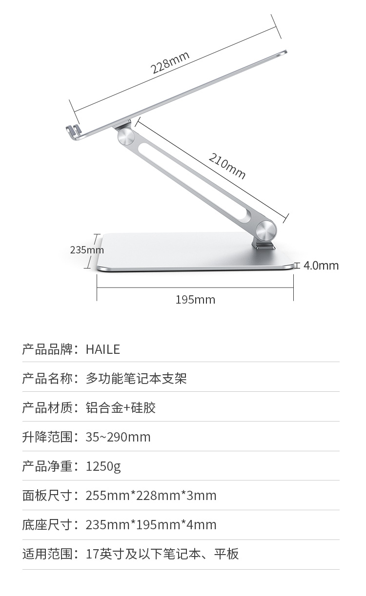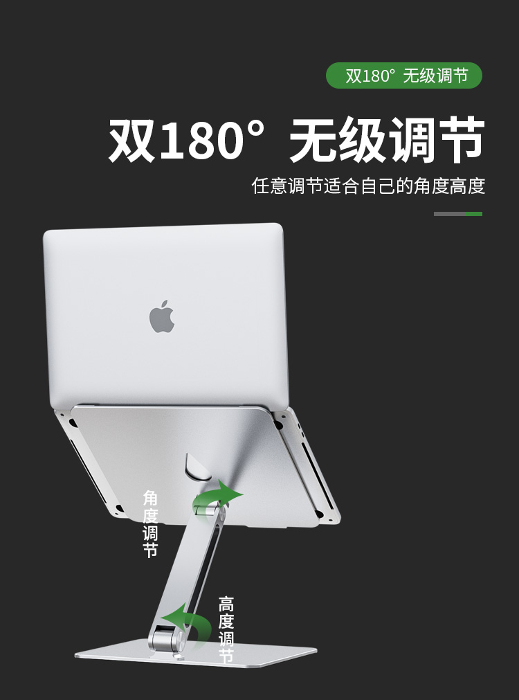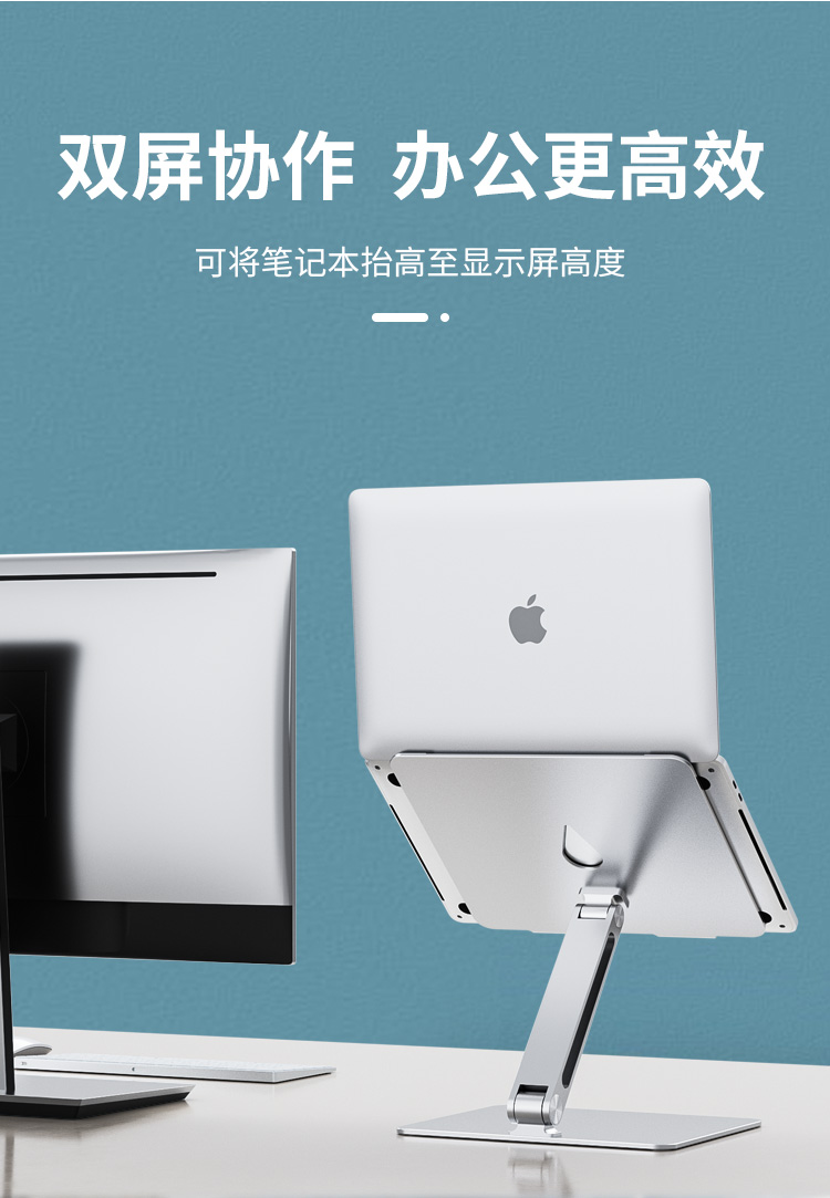HAILE电脑支架笔记本升降架拖电脑底座铝合金增高架手提电脑支架无极悬停AC-8 银色
