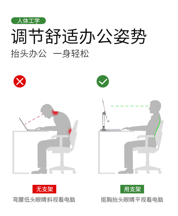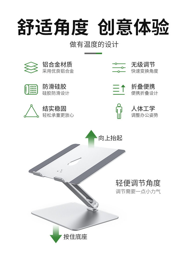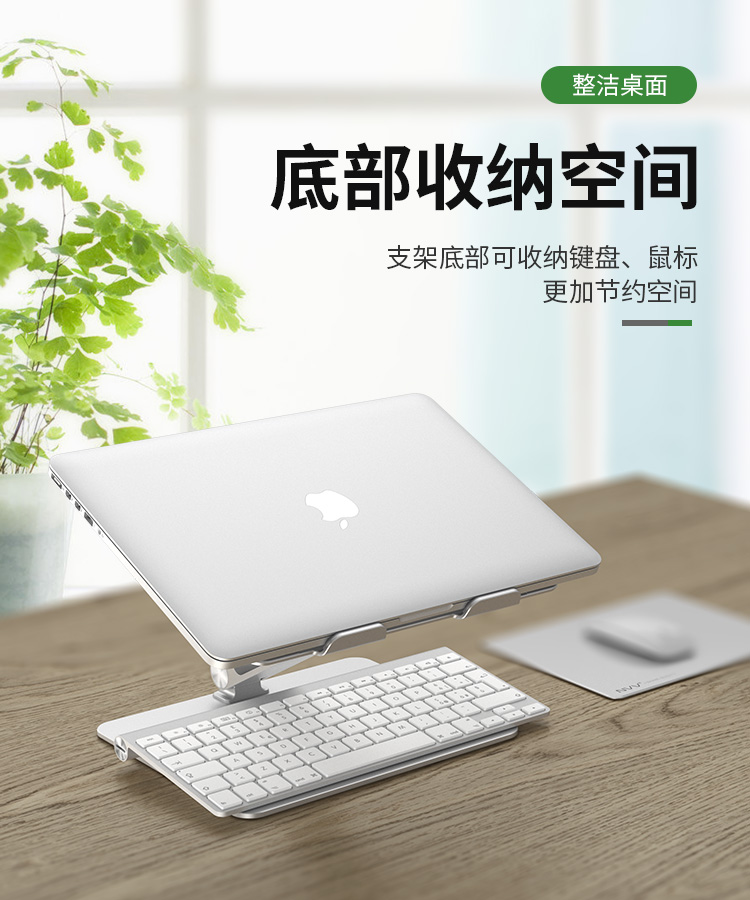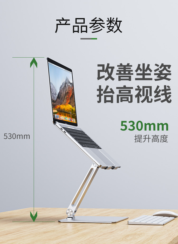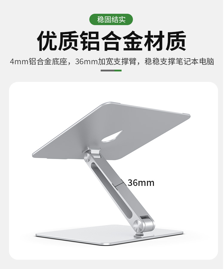 HAILE电脑支架笔记本升降架拖电脑底座铝合金增高架手提电脑支架无极悬停AC-8 银色