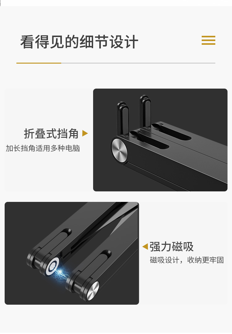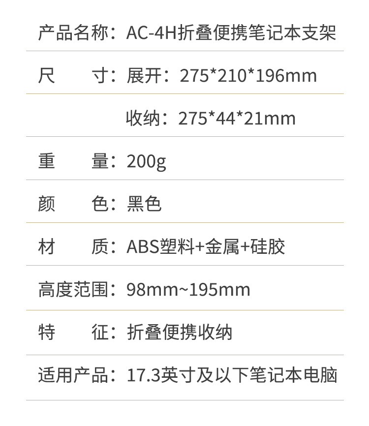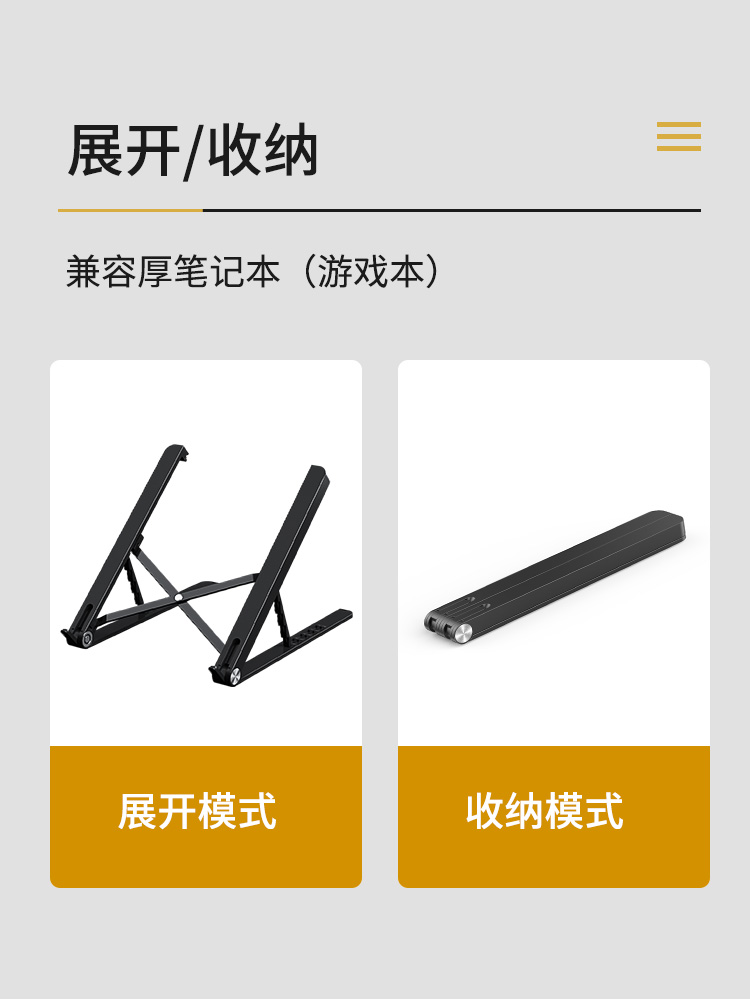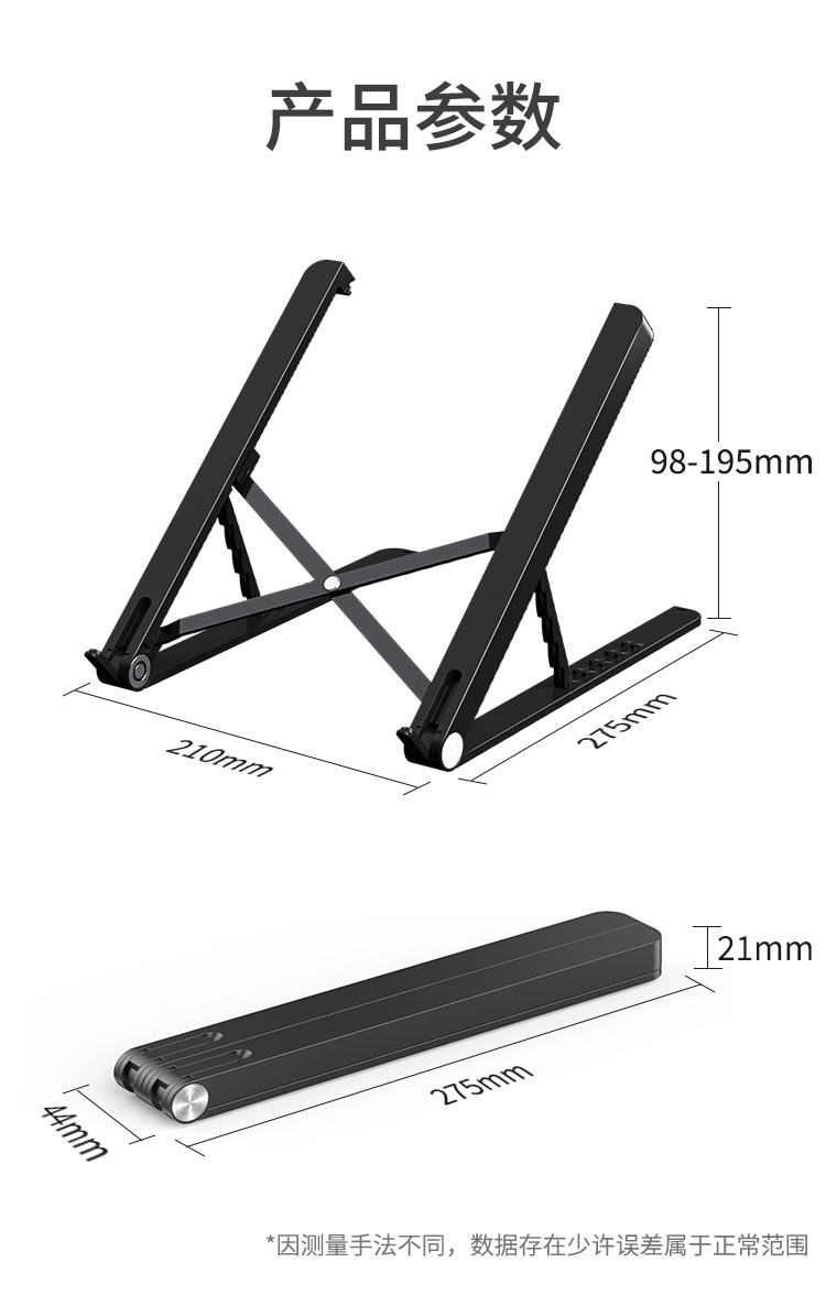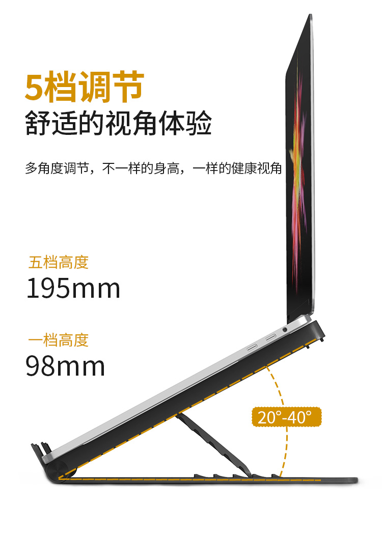 HAILE笔记本电脑支架散热架子便携易收纳五档调节AC-4H 黑色