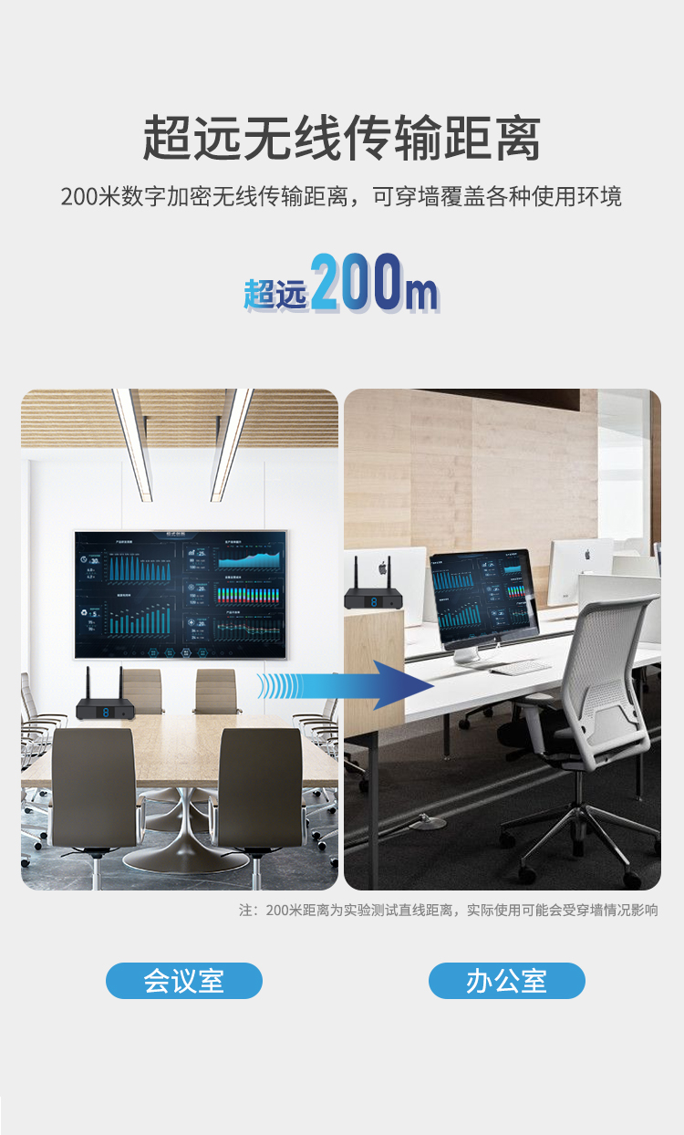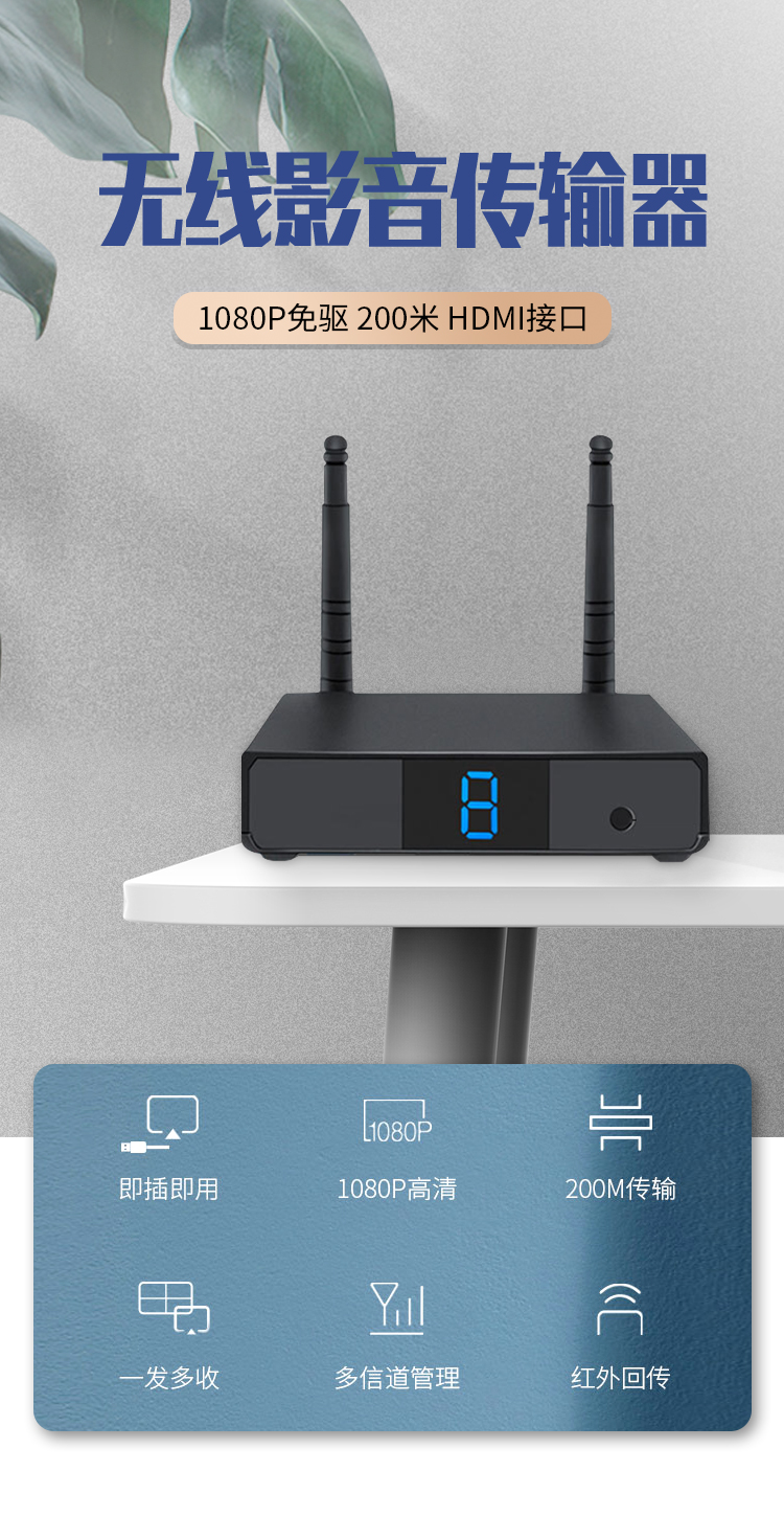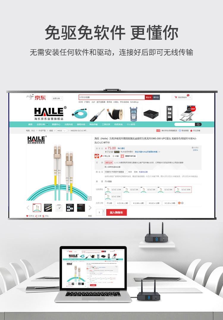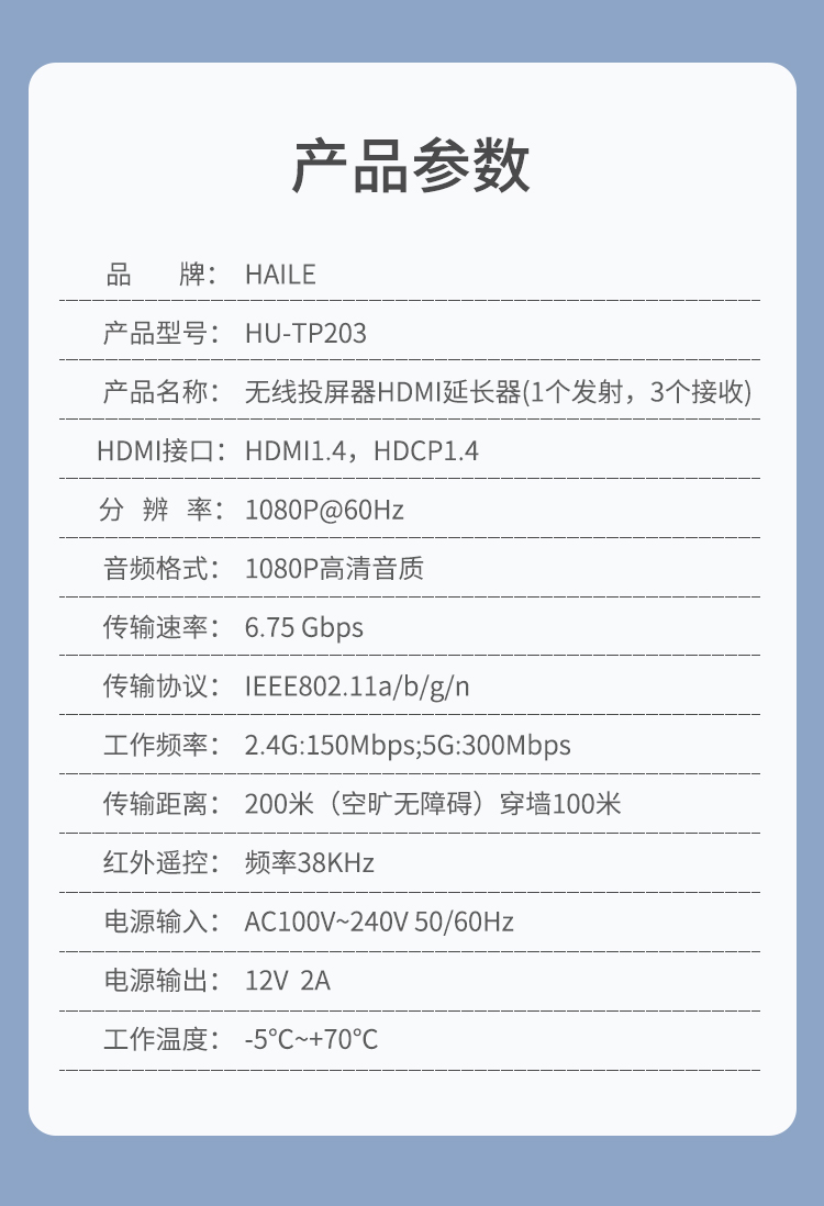 海乐(Haile)无线投屏器HDMI接口 分辨率1080P免驱200米超远三画面投屏 穿墙100米视频投影会议神器HU-TP203 黑色