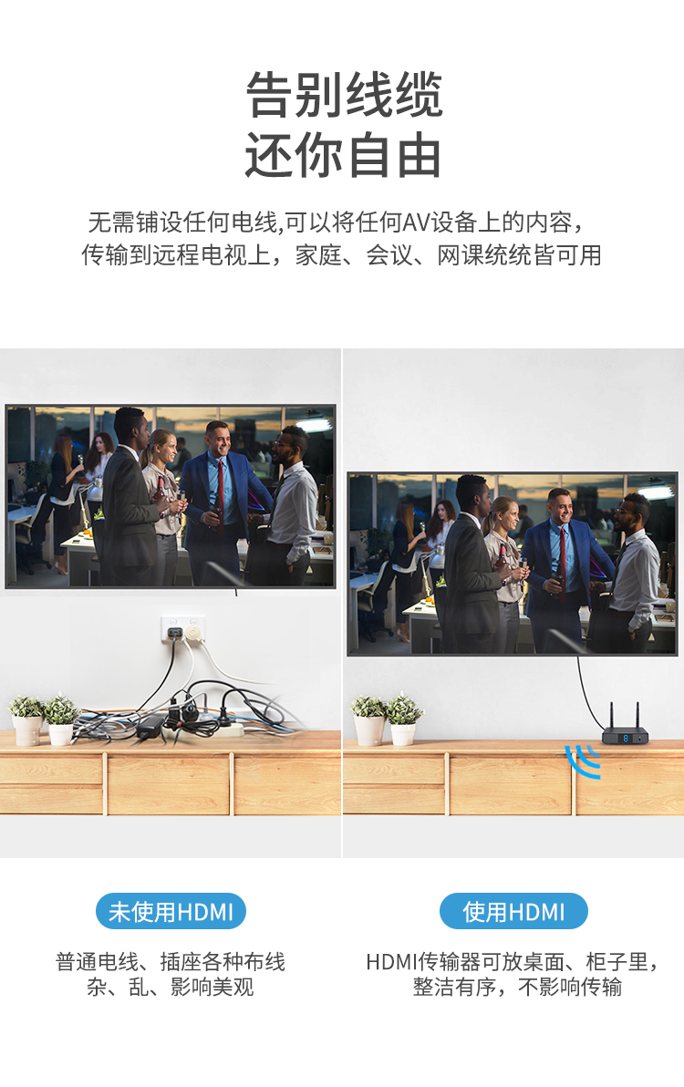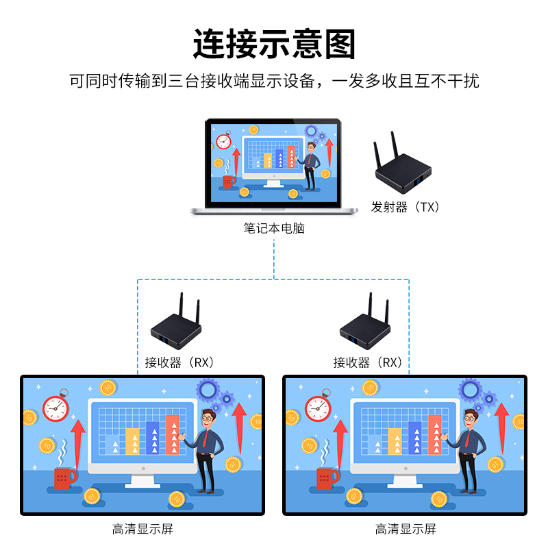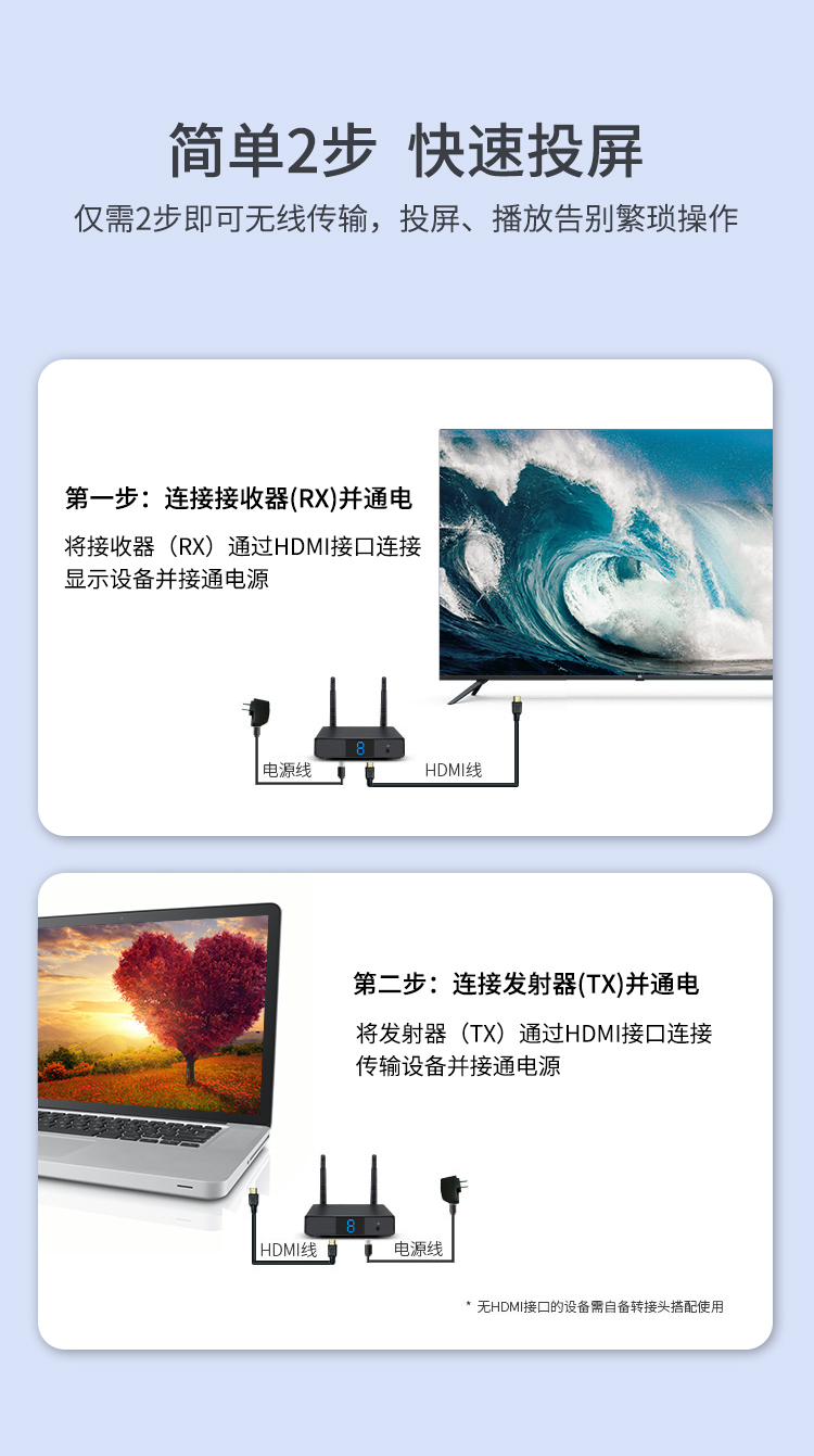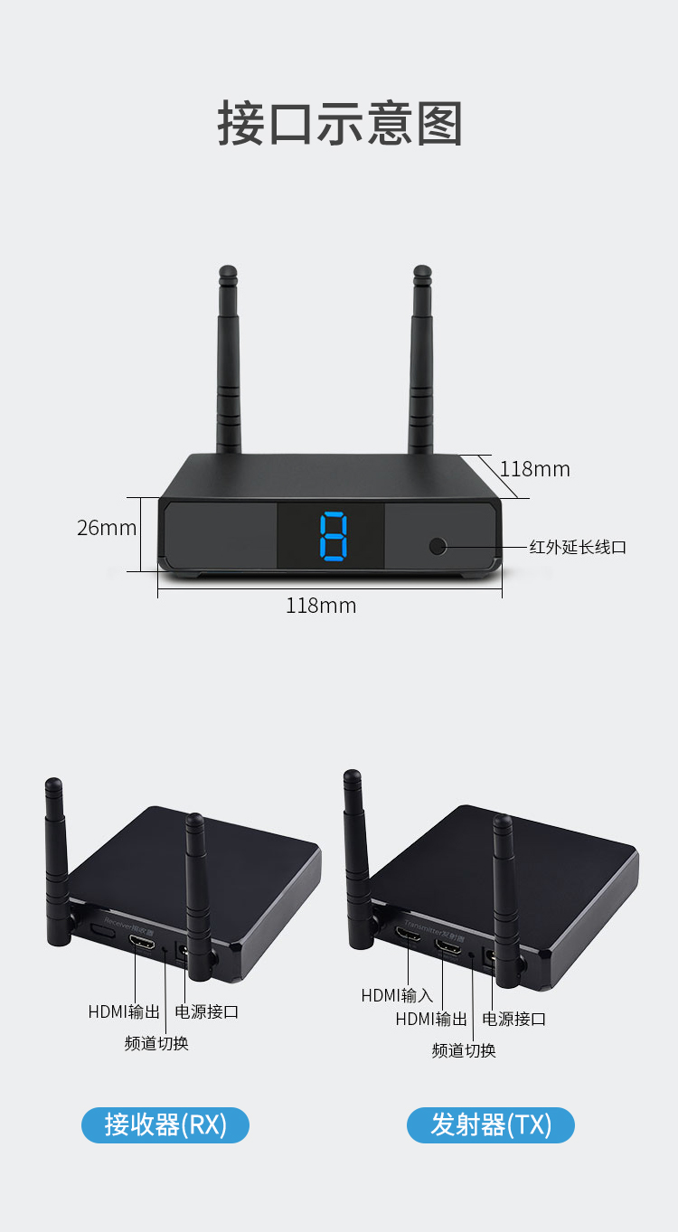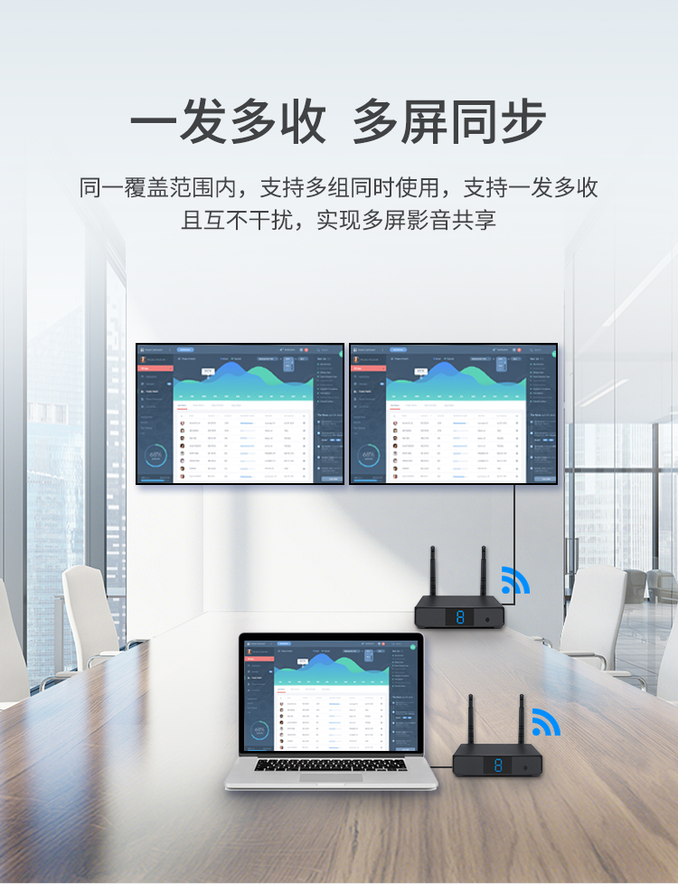 海乐(Haile)无线投屏器HDMI接口 分辨率1080P免驱200米超远三画面投屏 穿墙100米视频投影会议神器HU-TP203 黑色