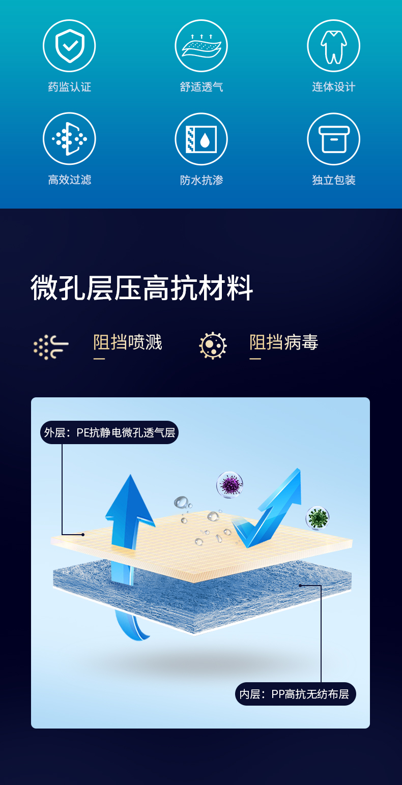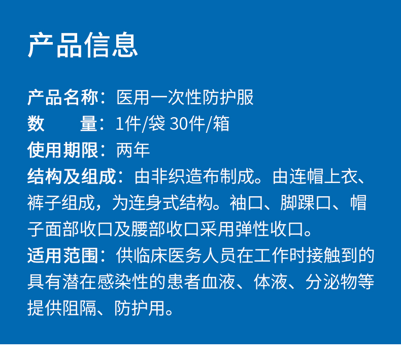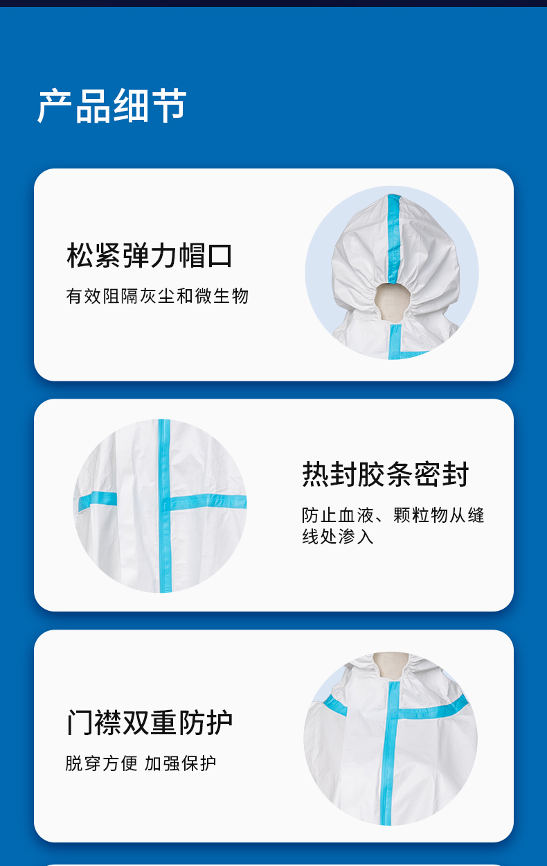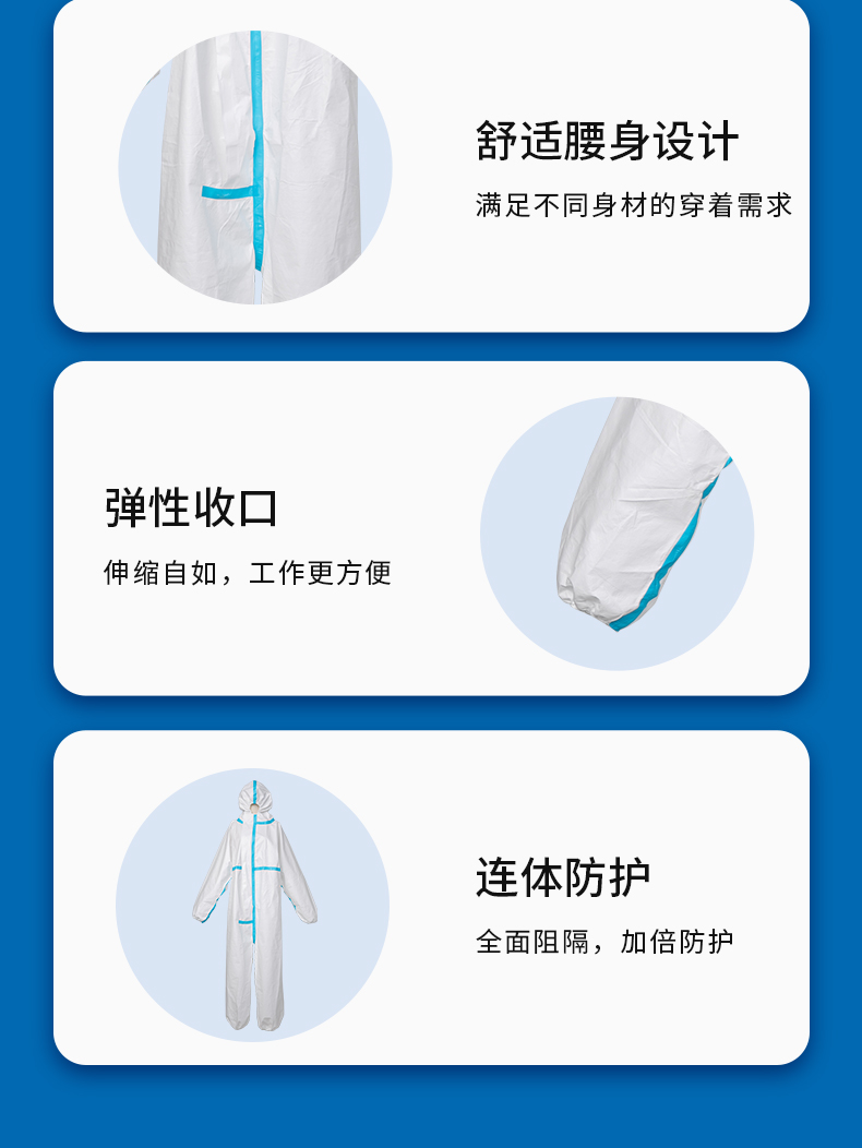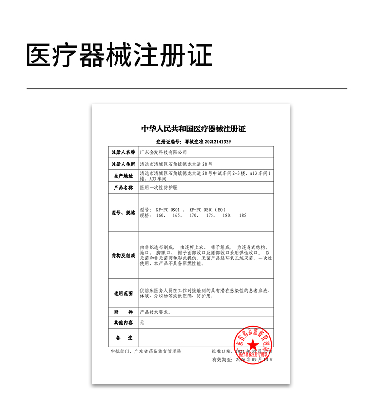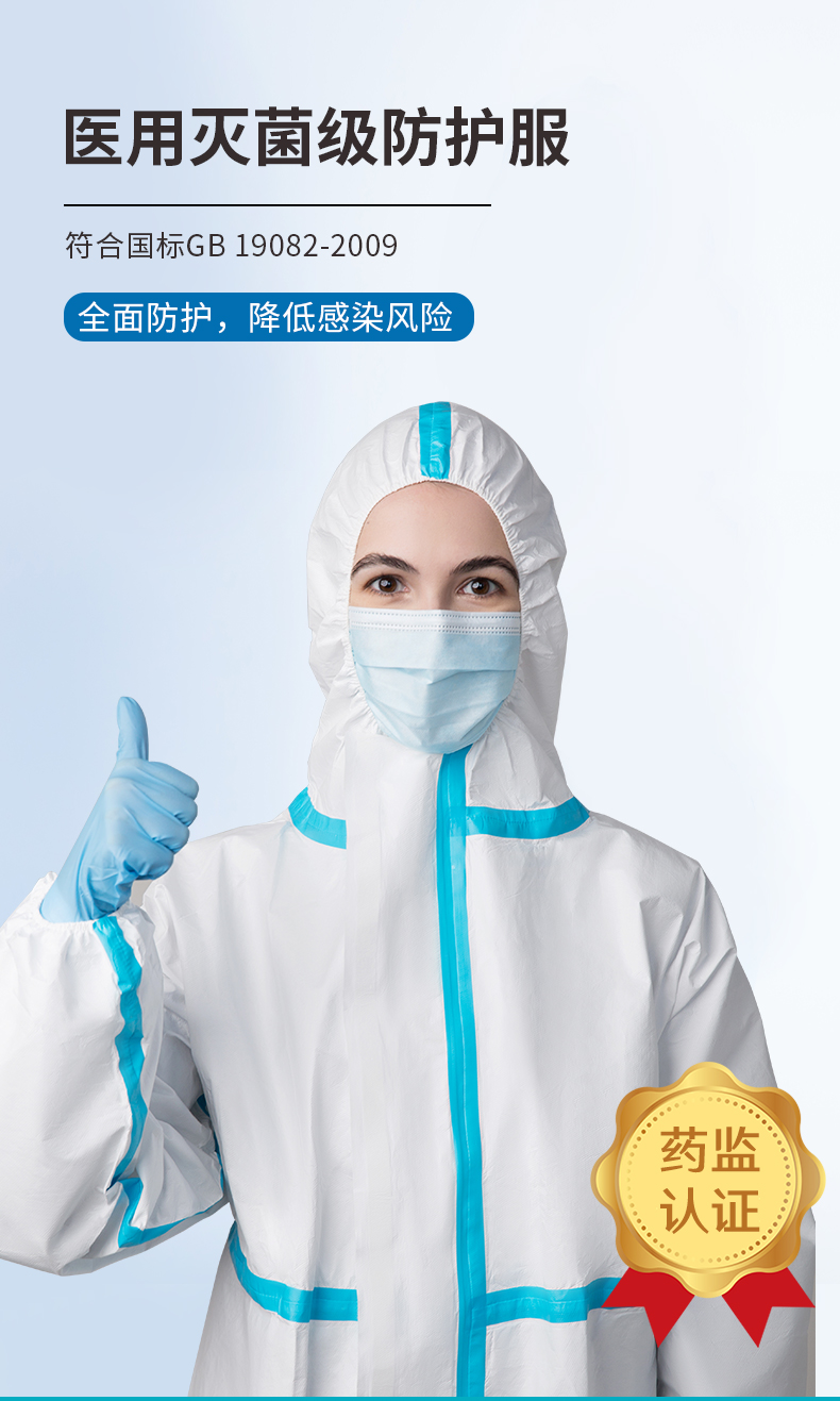 金发 KINGFA一次性医用防护服不带脚套无菌型隔离防护服 连身式码数可选 160cm 白色