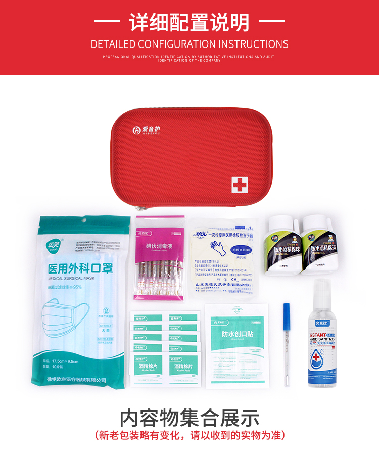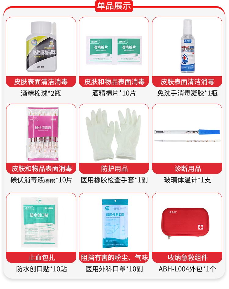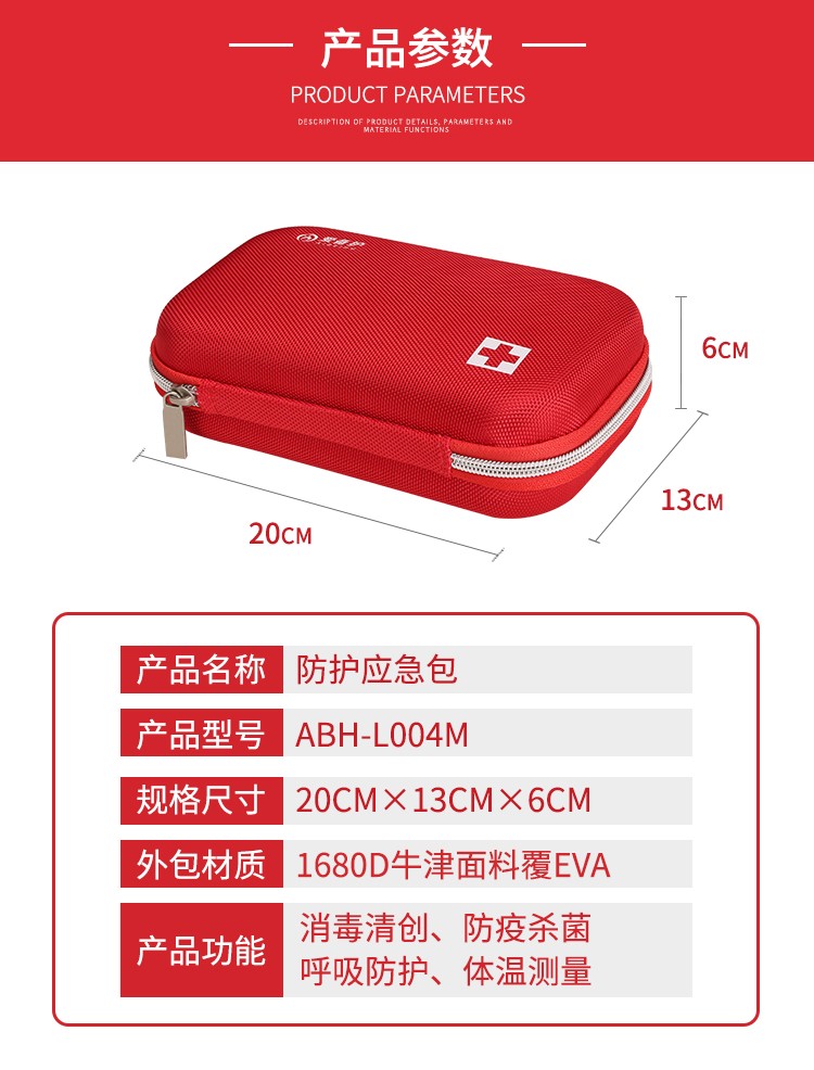 爱备护 急救包户外家用防控防护包旅行应急包便携车载应急救援包车用 ABH-L004M 红色