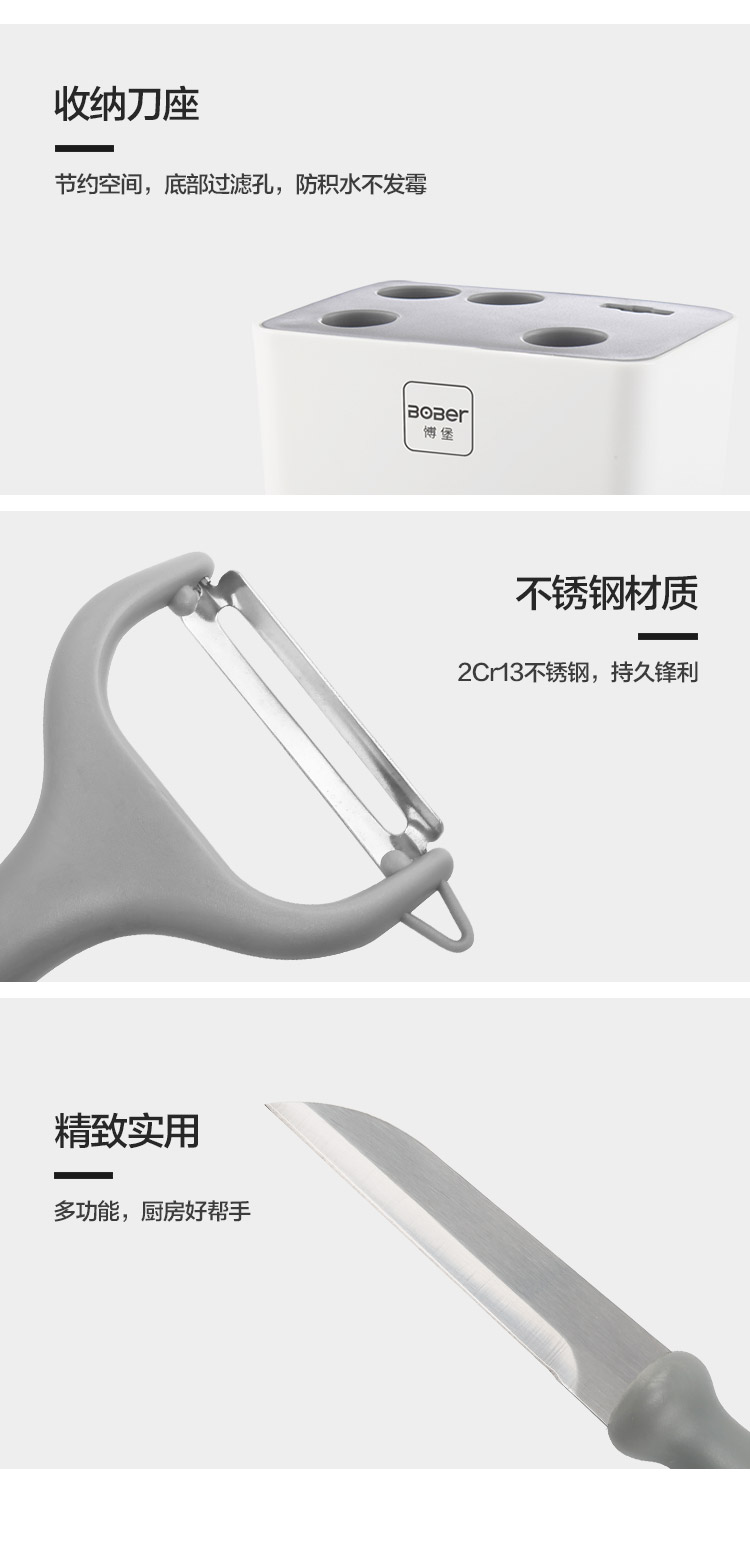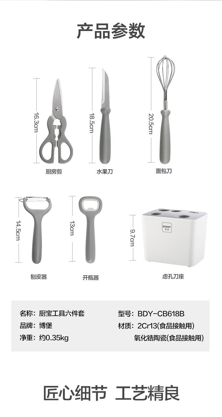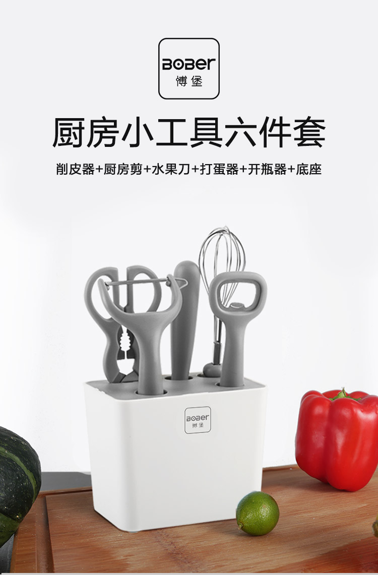 博堡 厨房削皮刀多功能剪刀打蛋器水果刀开瓶器多功能六件套食品级接触