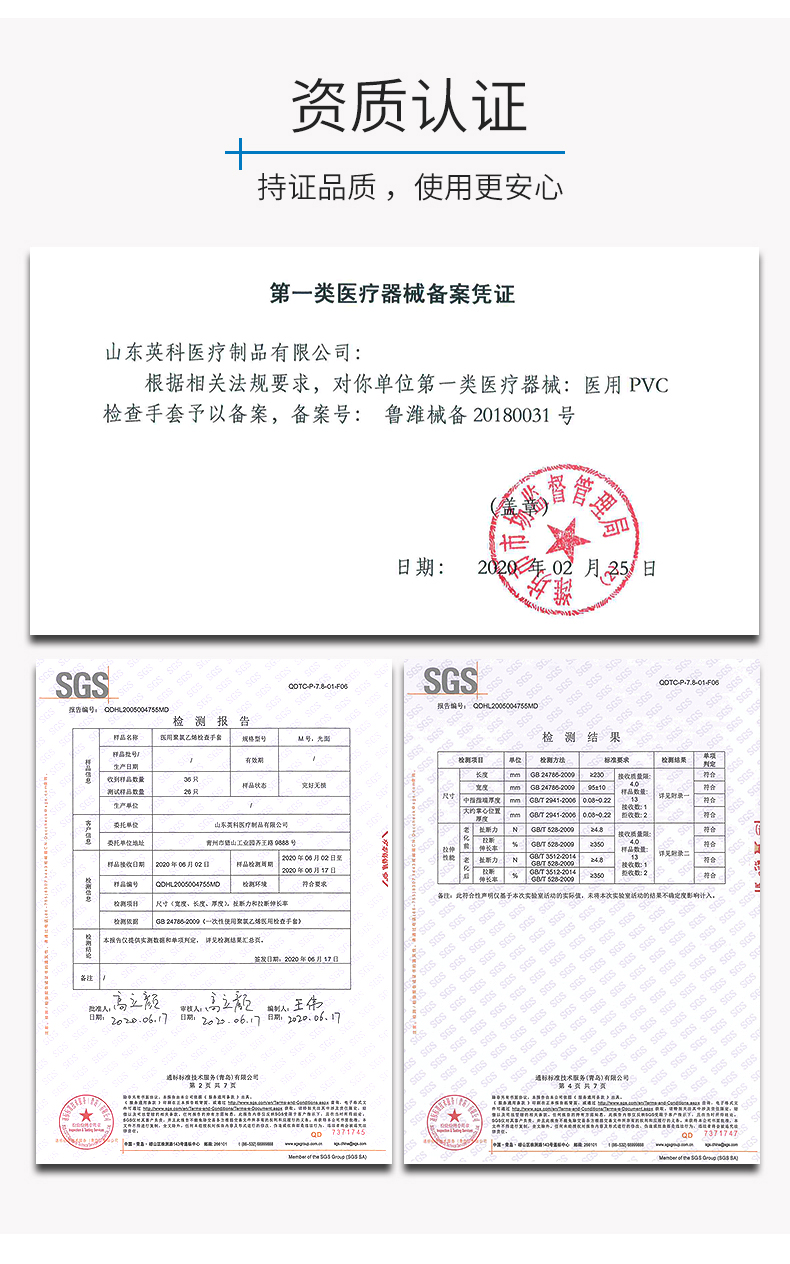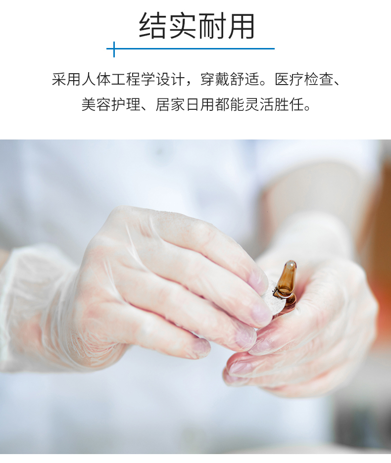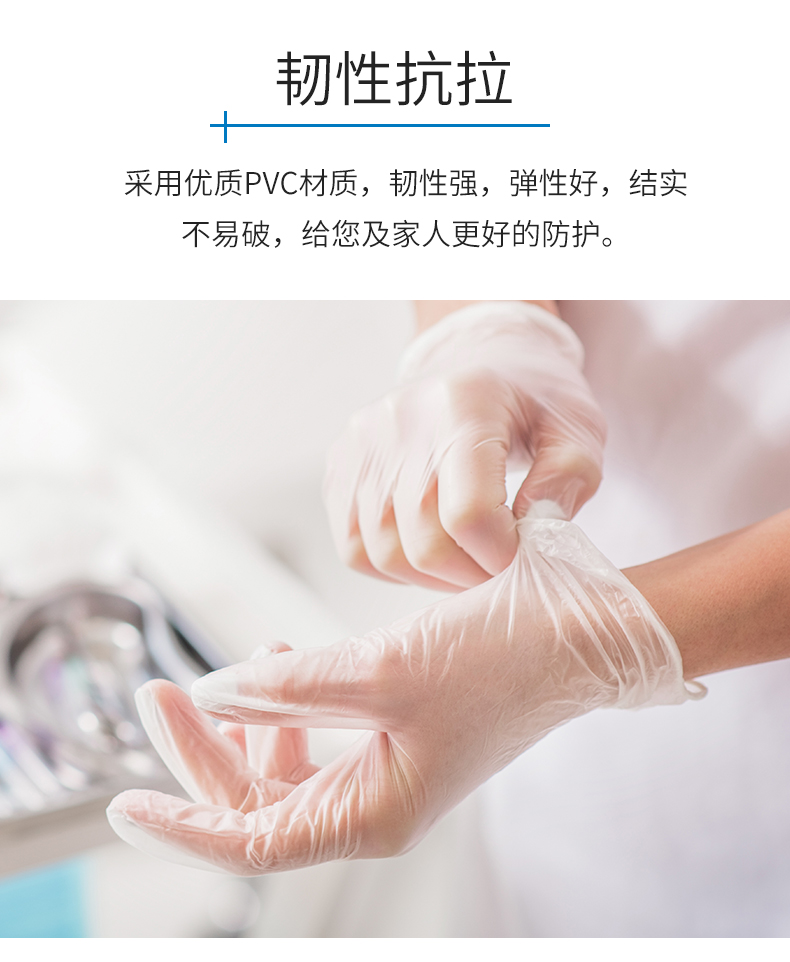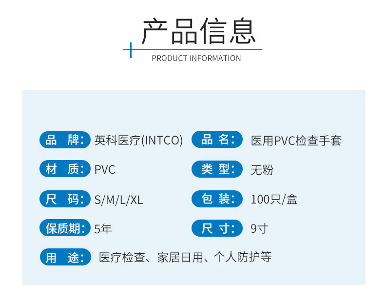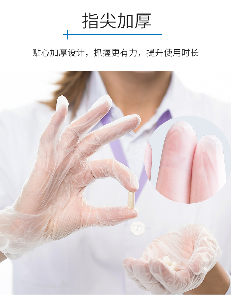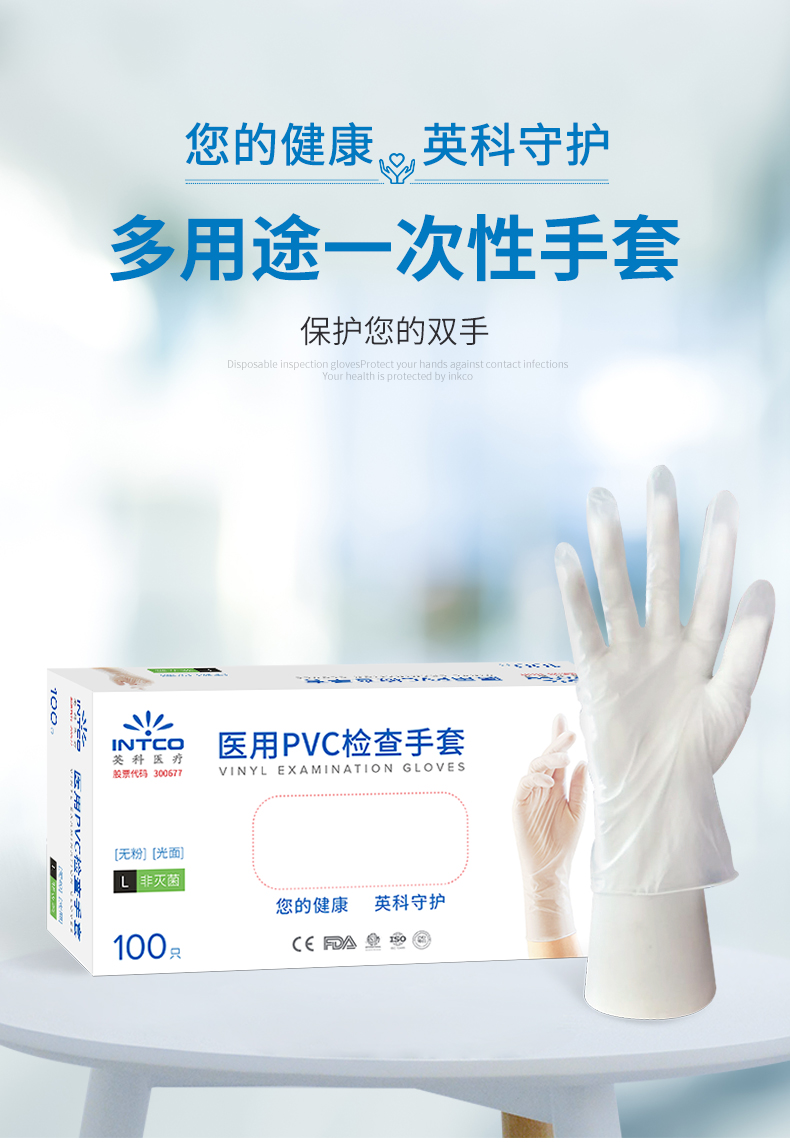 英科医疗 一次性医用手套PVC检查防护手套 指尖加厚防交叉感染 透明色L码 100只/盒 白色