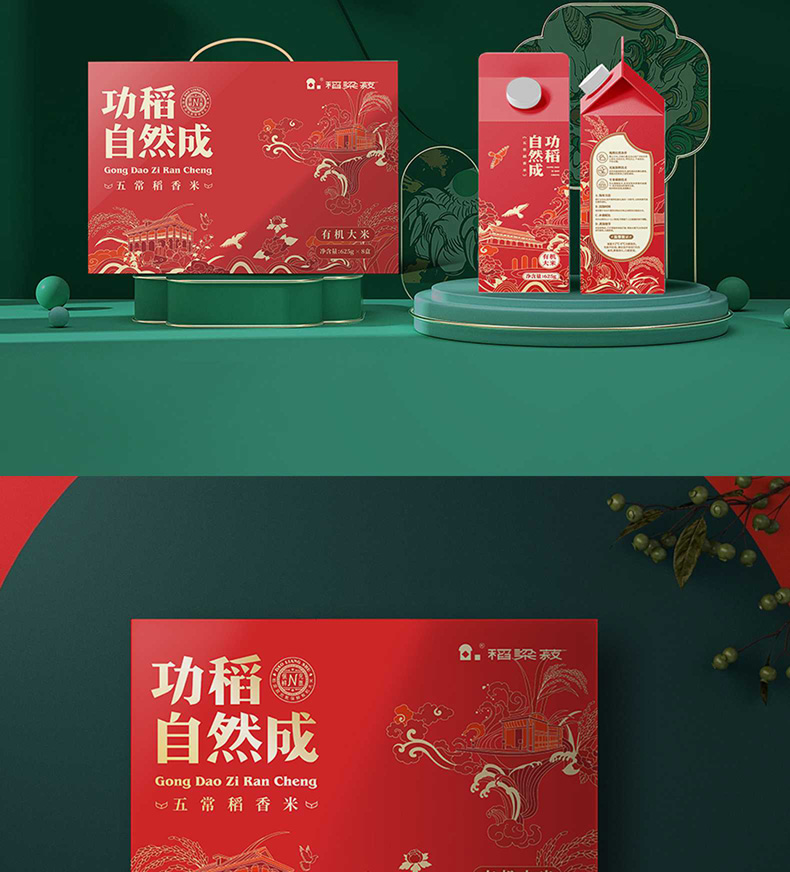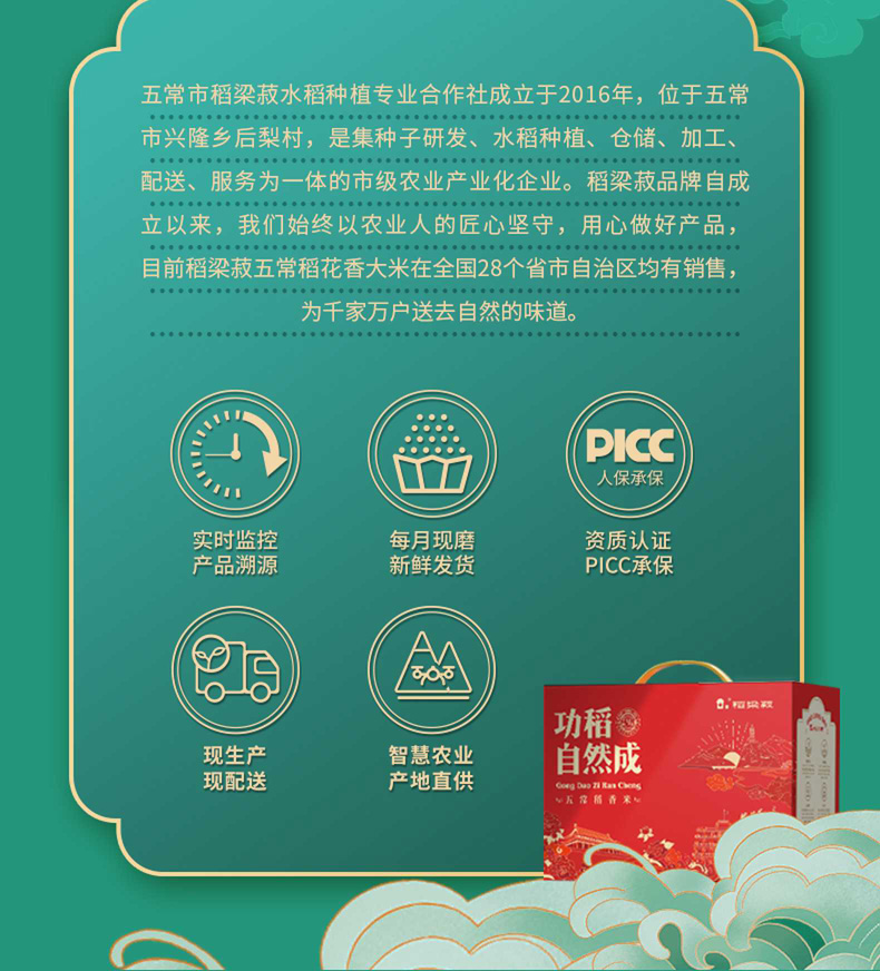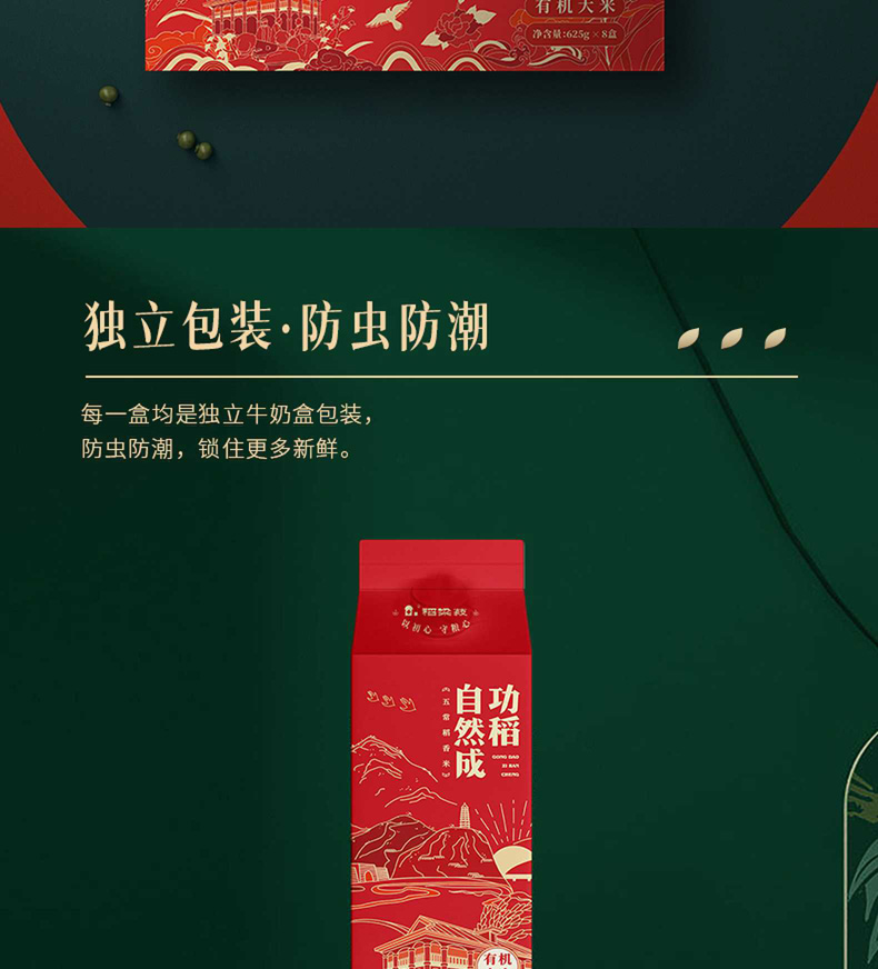 稻梁菽 DLS004 五常有机稻花香大米5kg 功稻自然成款 红色(单位:盒)