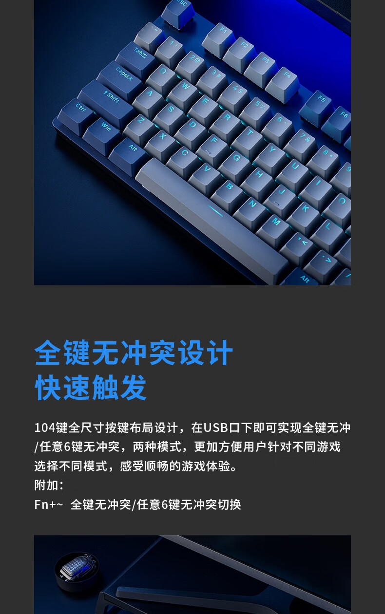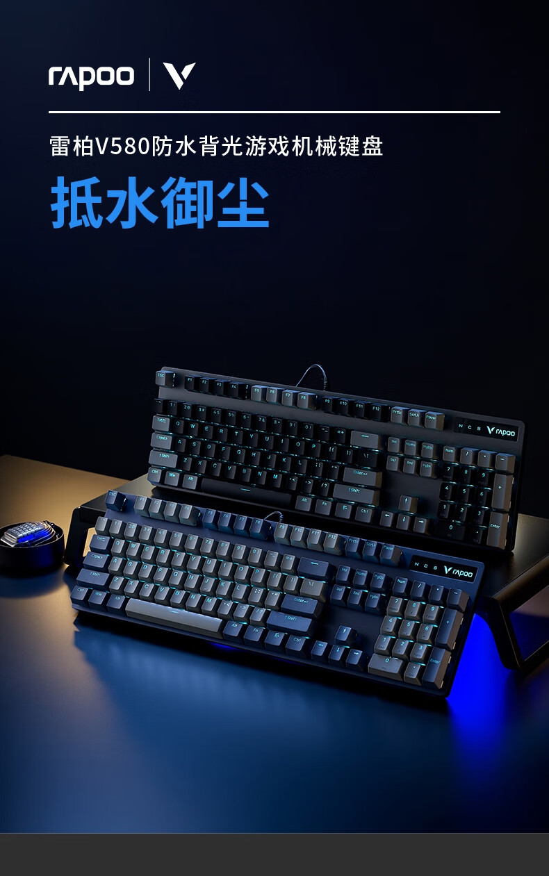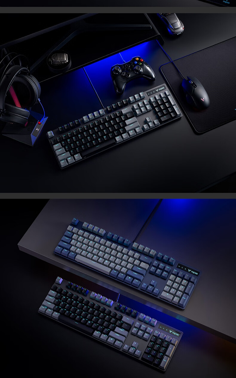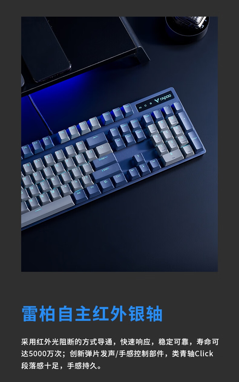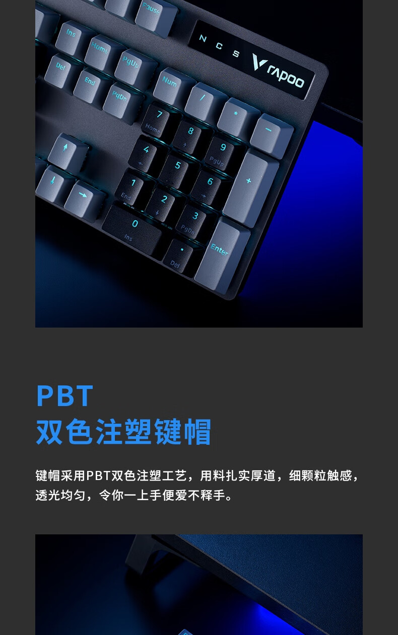 雷柏V580拼色版PBT键帽防水104键背光有线机械键盘 个 蓝灰色