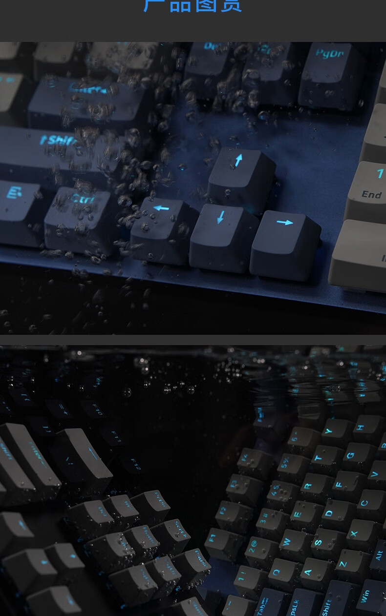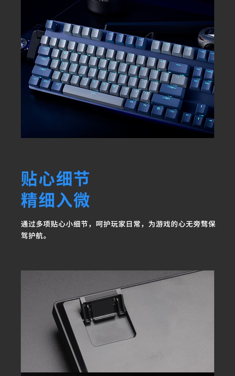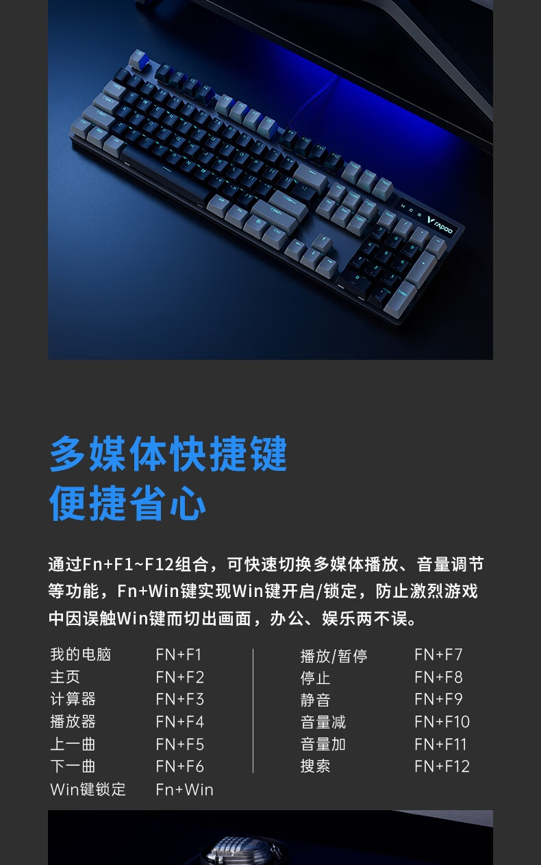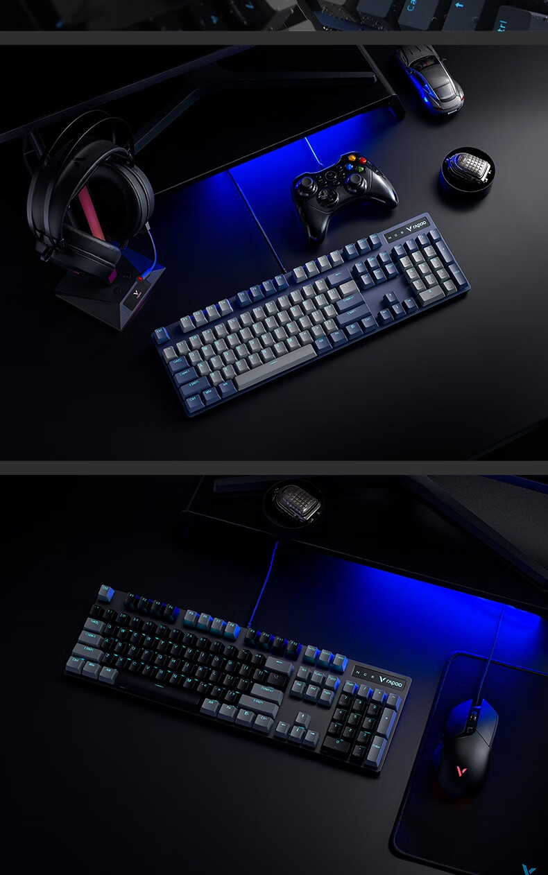 雷柏V580拼色版PBT键帽防水104键背光有线机械键盘 个 蓝灰色