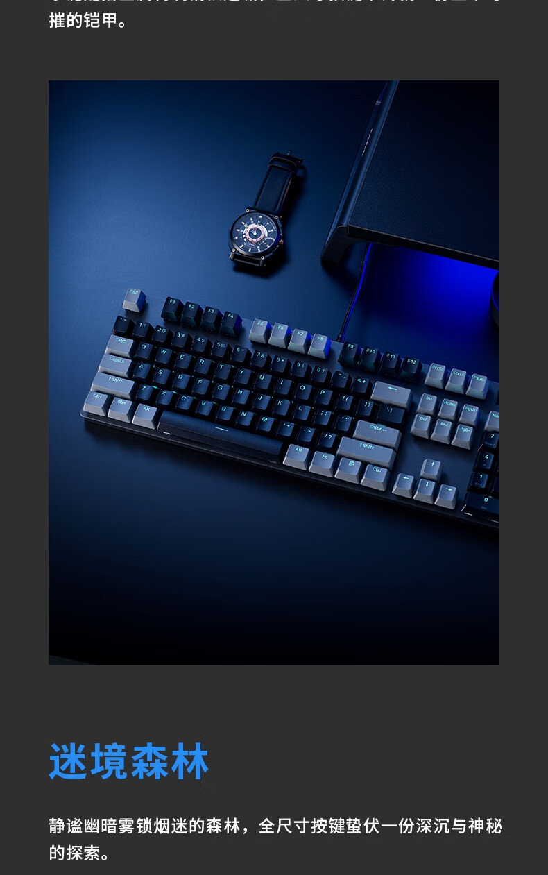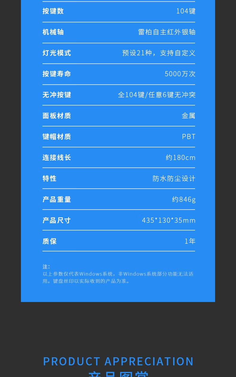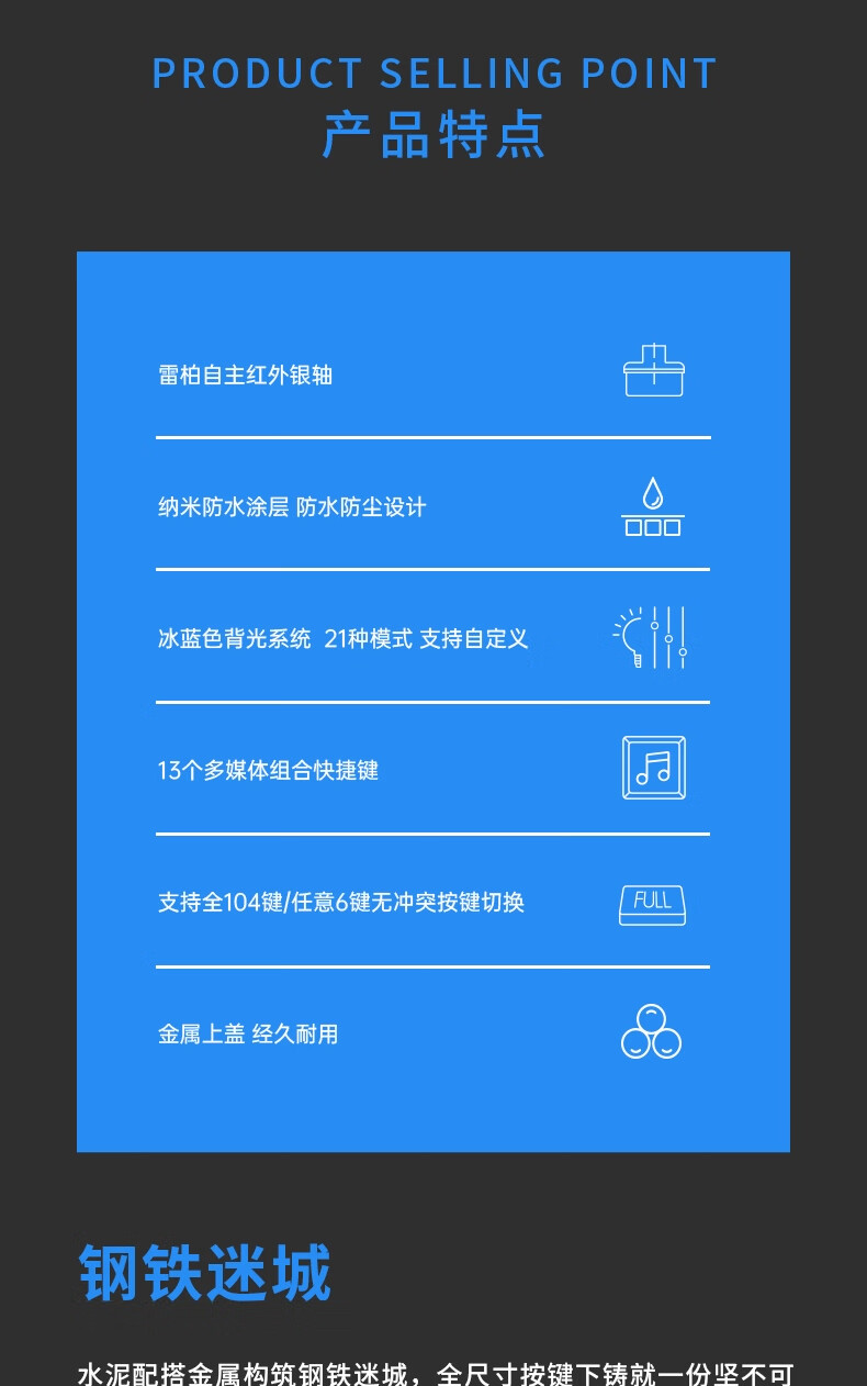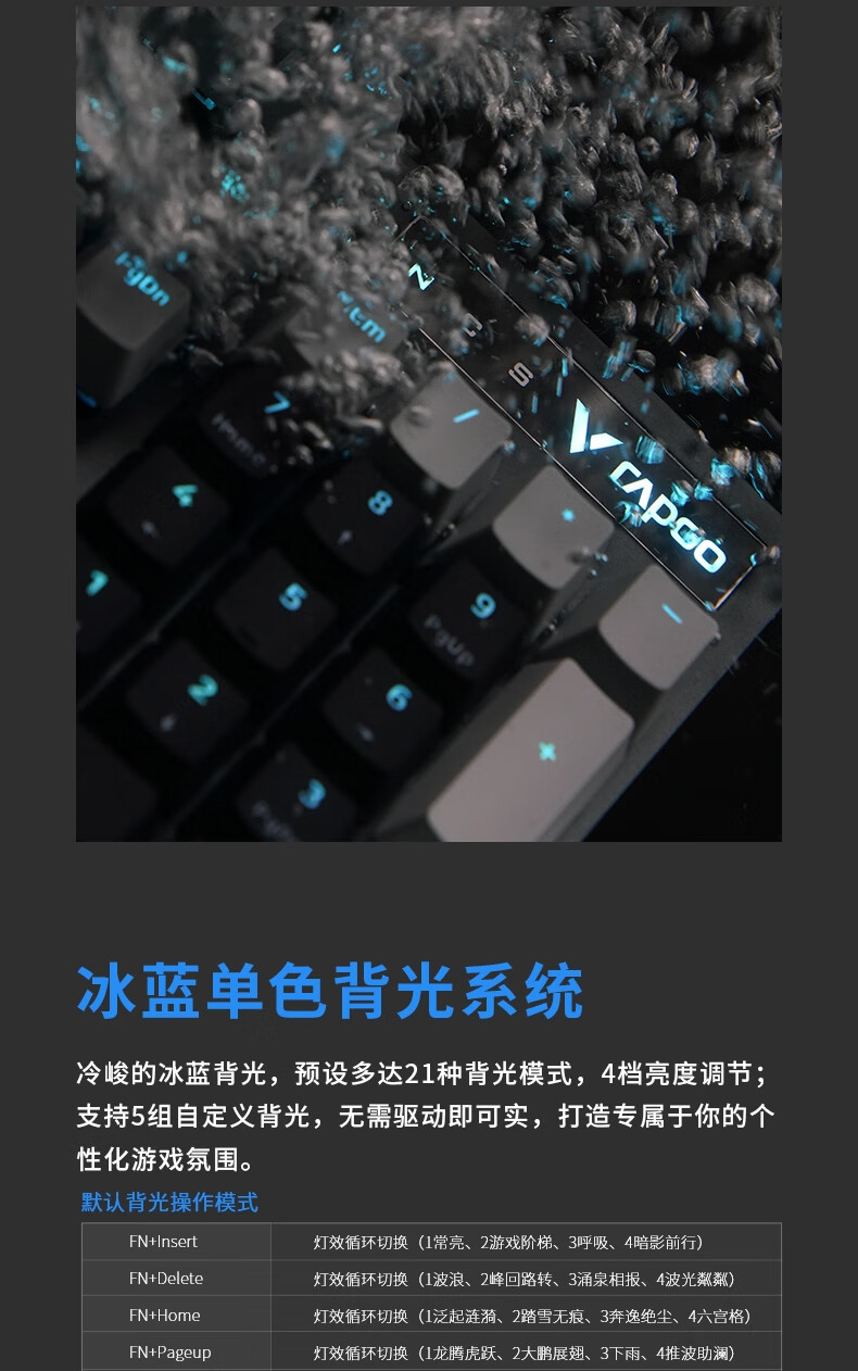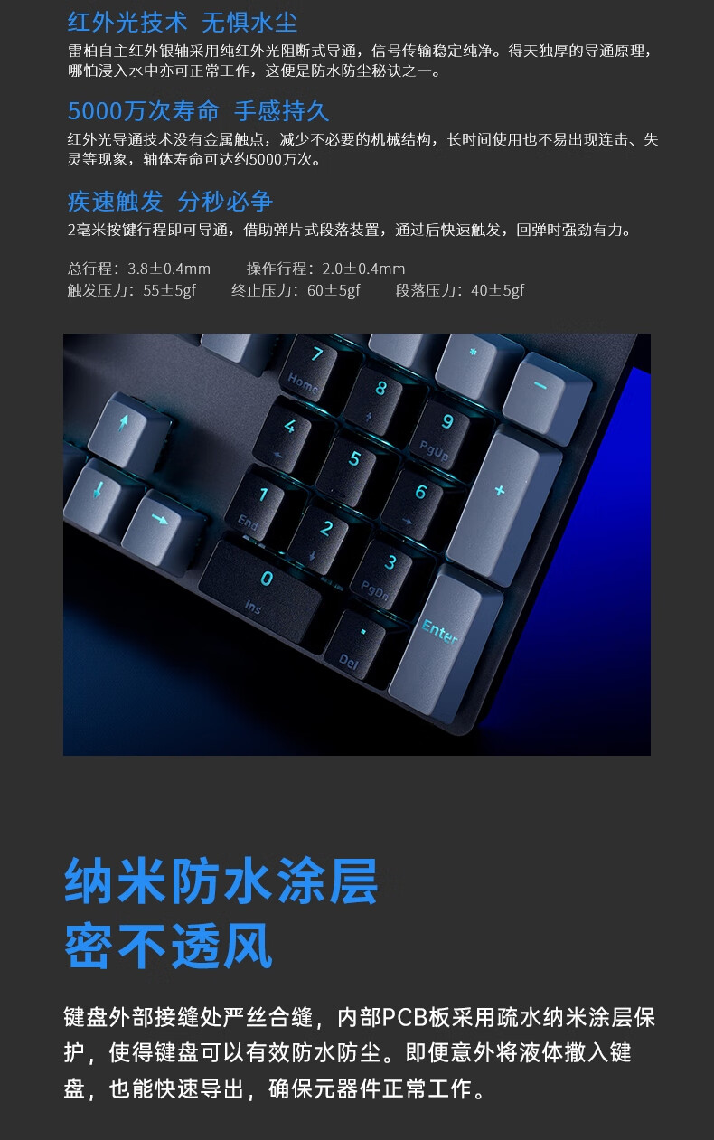 雷柏V580拼色版PBT键帽防水104键背光有线机械键盘 个 蓝灰色