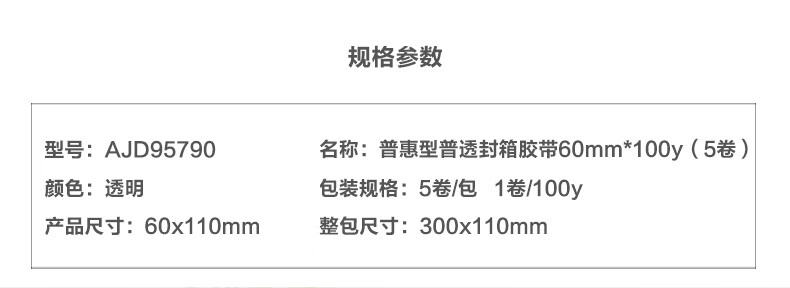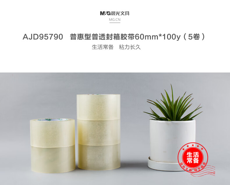 晨光(M&G)文具加宽办公用品 透明封箱胶带60mm*100y*45um (91.4米/卷) 5卷/筒打包胶带大胶布 AJD95790 白色