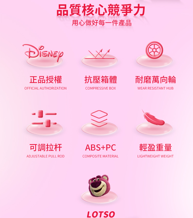 迪士尼DH22689-LO草莓熊系列拉杆箱玫红20寸 玫瑰红色 20寸