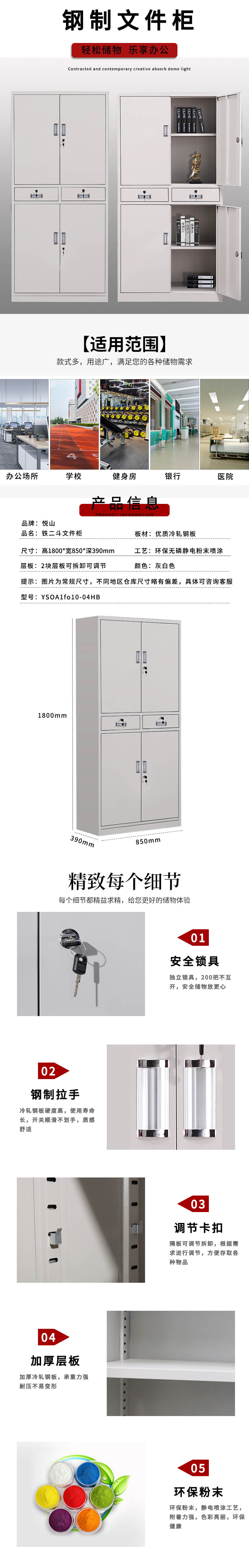 悦山 办公钢制储物柜员工柜 铁二斗文件柜 常规款850*390*1800*1台 灰白色
