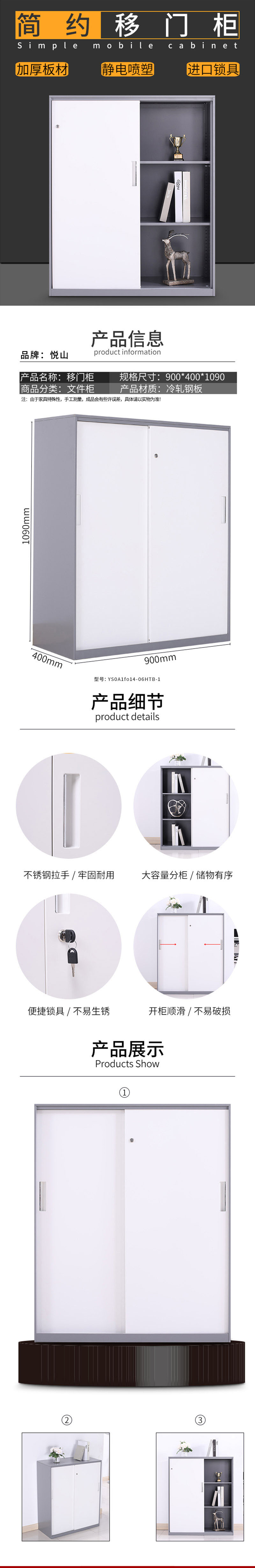 悦山 移门柜金属文件柜铁皮柜钢制财务档案柜900*400*1090*1台 灰+白
