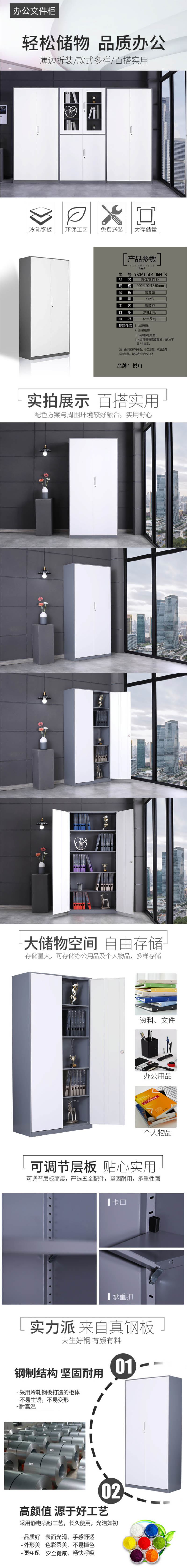 悦山 钢制铁皮柜带锁资料柜储物柜灰框白门对开文件柜900*400*1850mm*1台 灰+白