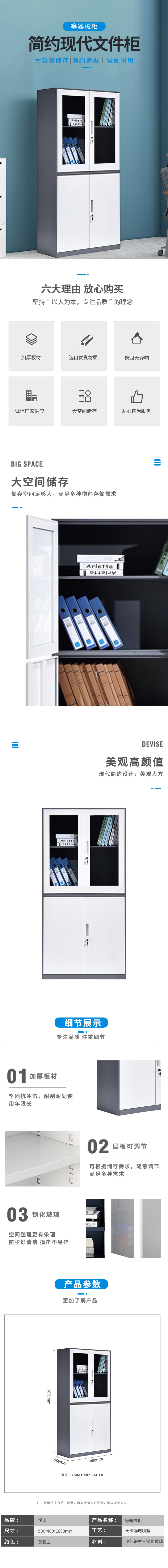 悦山 加厚文件柜办公柜钢制铁皮柜灰框白门 等器械柜900*400*1850*1台 灰+白