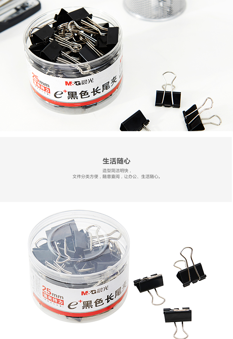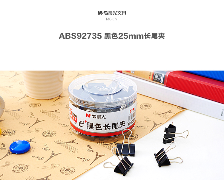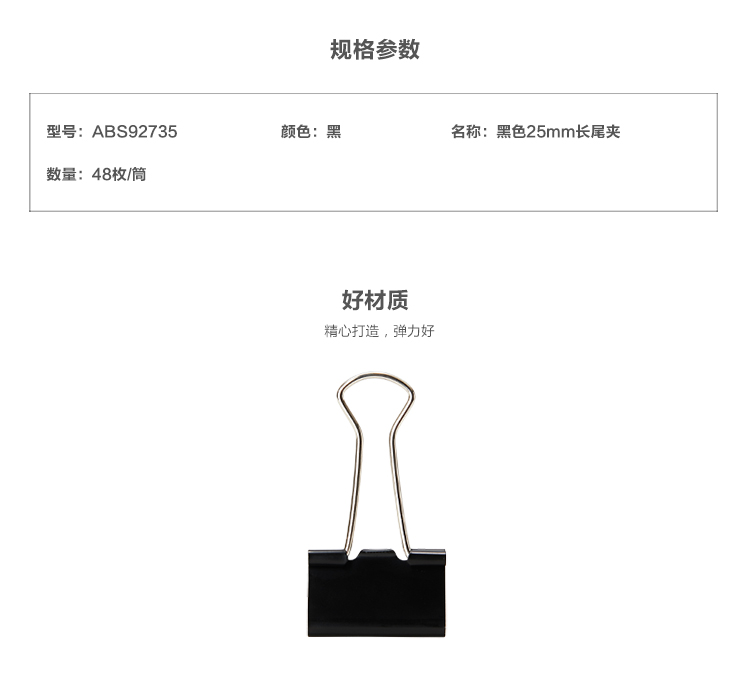 晨光(M&G)文具4#25mm 48只/罐 黑色长尾夹 ABS92735单位:罐 黑色