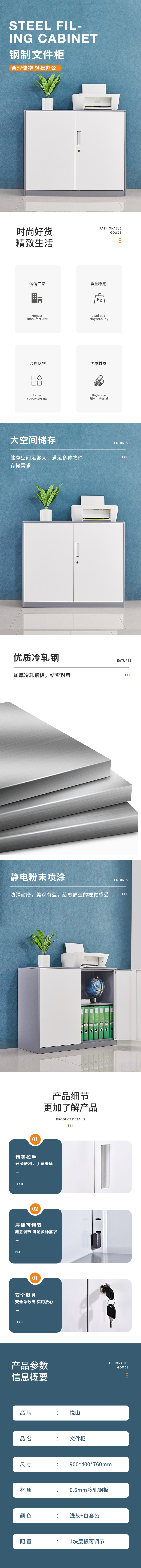 悦山钢制文件柜 铁门760矮柜 900*400*760*1台 浅灰+白