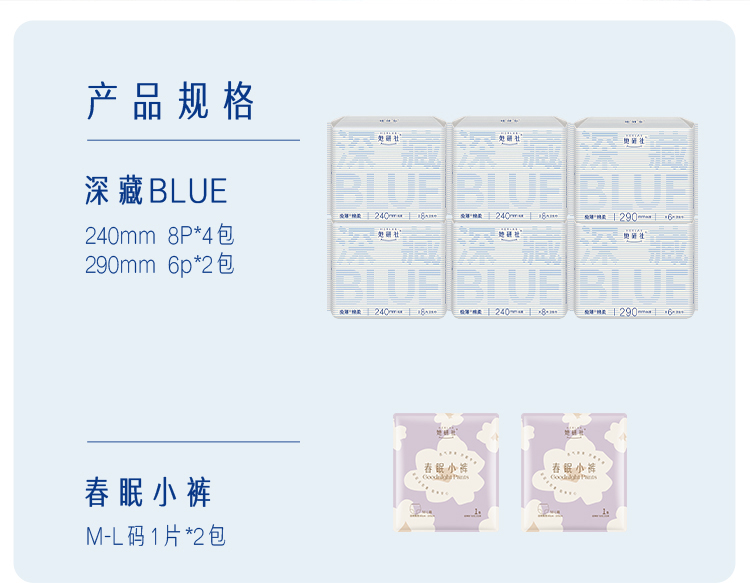 她研社深藏Blue超薄瞬吸卫生巾 日夜组合6包44片 +春眠小裤M-L码×2条 白色