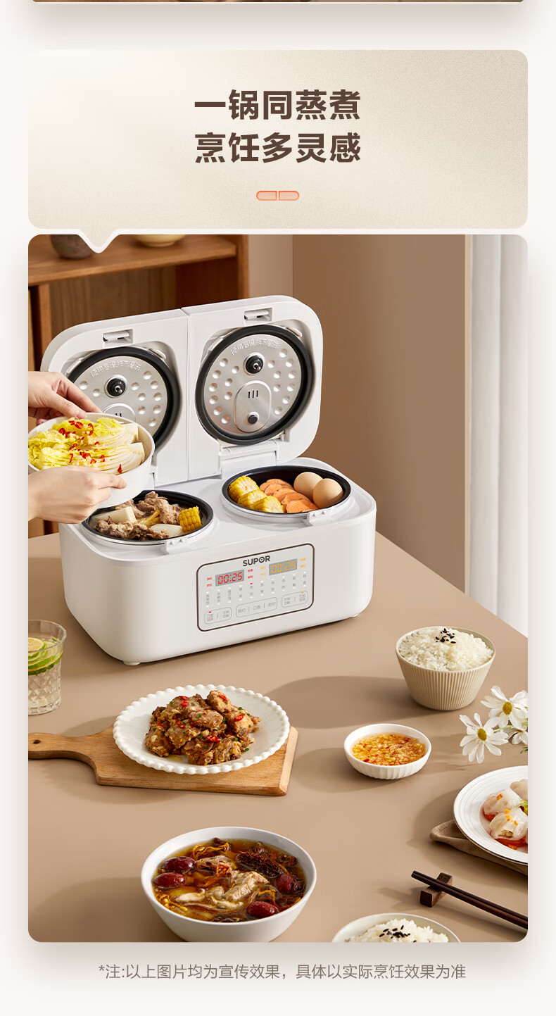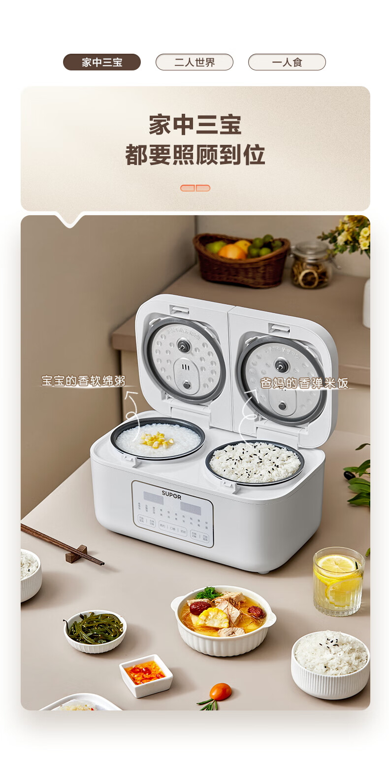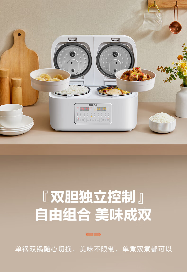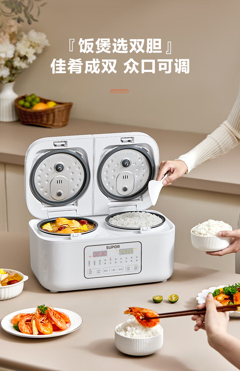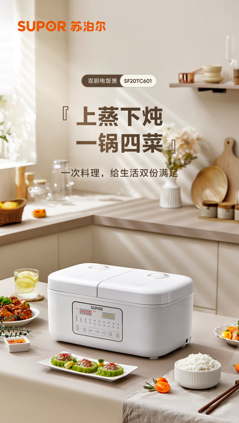 苏泊尔(SUPOR)双胆电饭煲电饭锅2+2L SF20TC601单位:个 白色